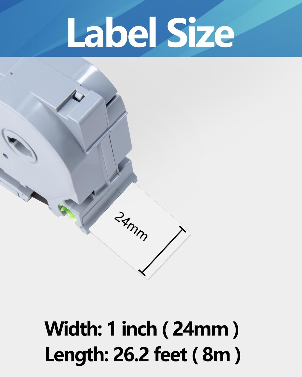 - Compatibility: The 24mm label tape is compatible with a wide range of Brother label printer, including the P-touch Cube Plus, PT-D600, PT-D610BT, PT-P900W, PT-P950NW, PTD600VP, PT-E550WVP, PT-P750W, PT-P800W and more