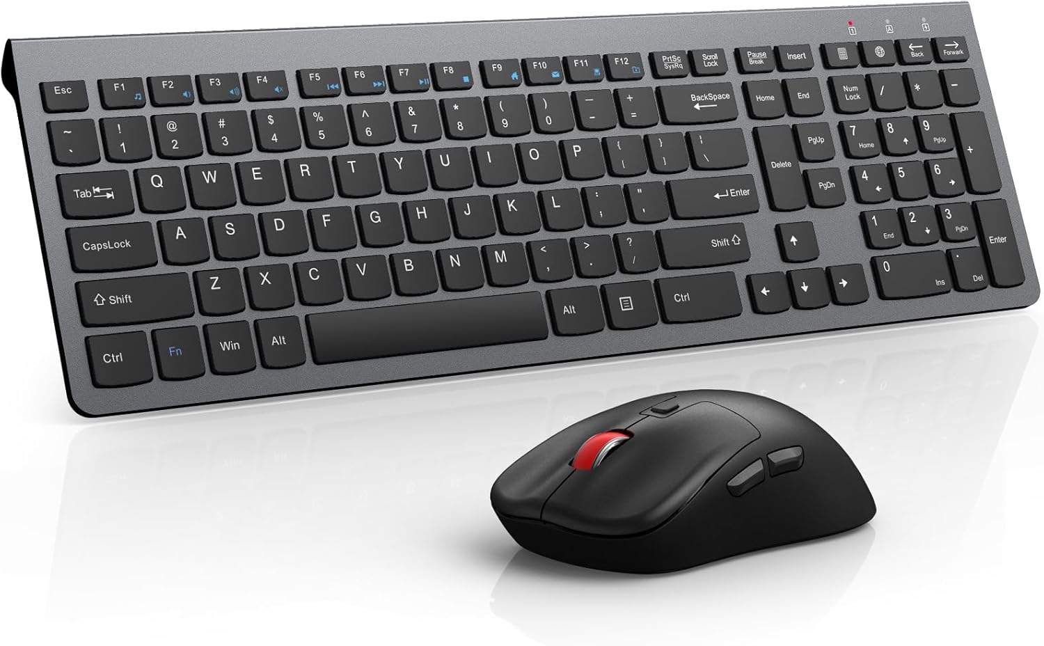 Wireless Keyboard and Mouse Combo,Quiet Click,Full Size Design with Number Pad,Ergonomic Mouse with 5 DPI,Sleep Mode-2.4G Silent Portable Cordless Combo for Laptop/PC/Computer/Mac(Grey)