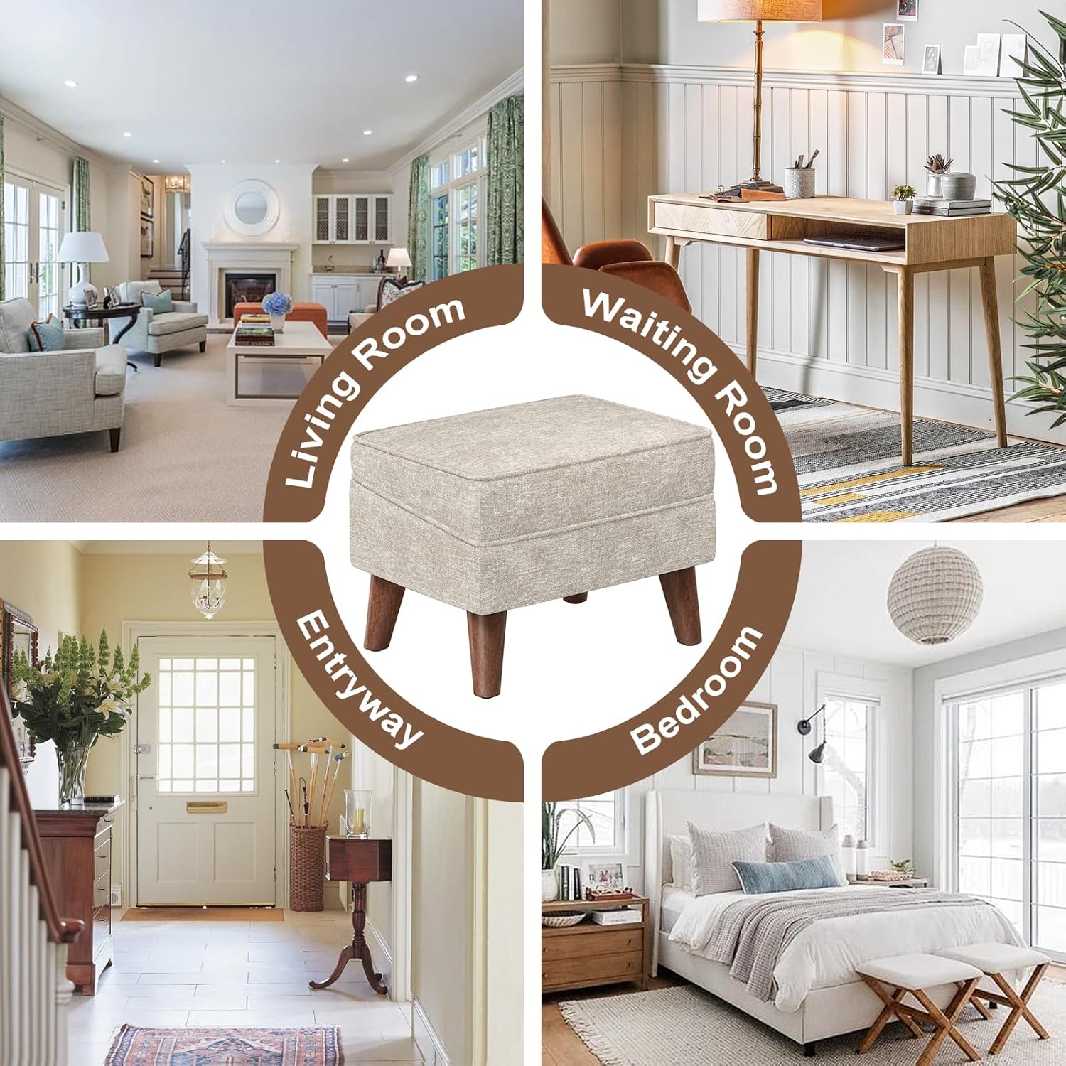- 【Durable and Sturdy Stool】Our ottoman cushion is made of quality foam covered with skin-friendly linen fabric, the thick and fluffy seat provides a soft and comfortable feeling when you sit on it. The fine grade wood frame and four solid legs make this small ottoman foot rest a strong sturdiness and long service life which holds up to 250 lbs.