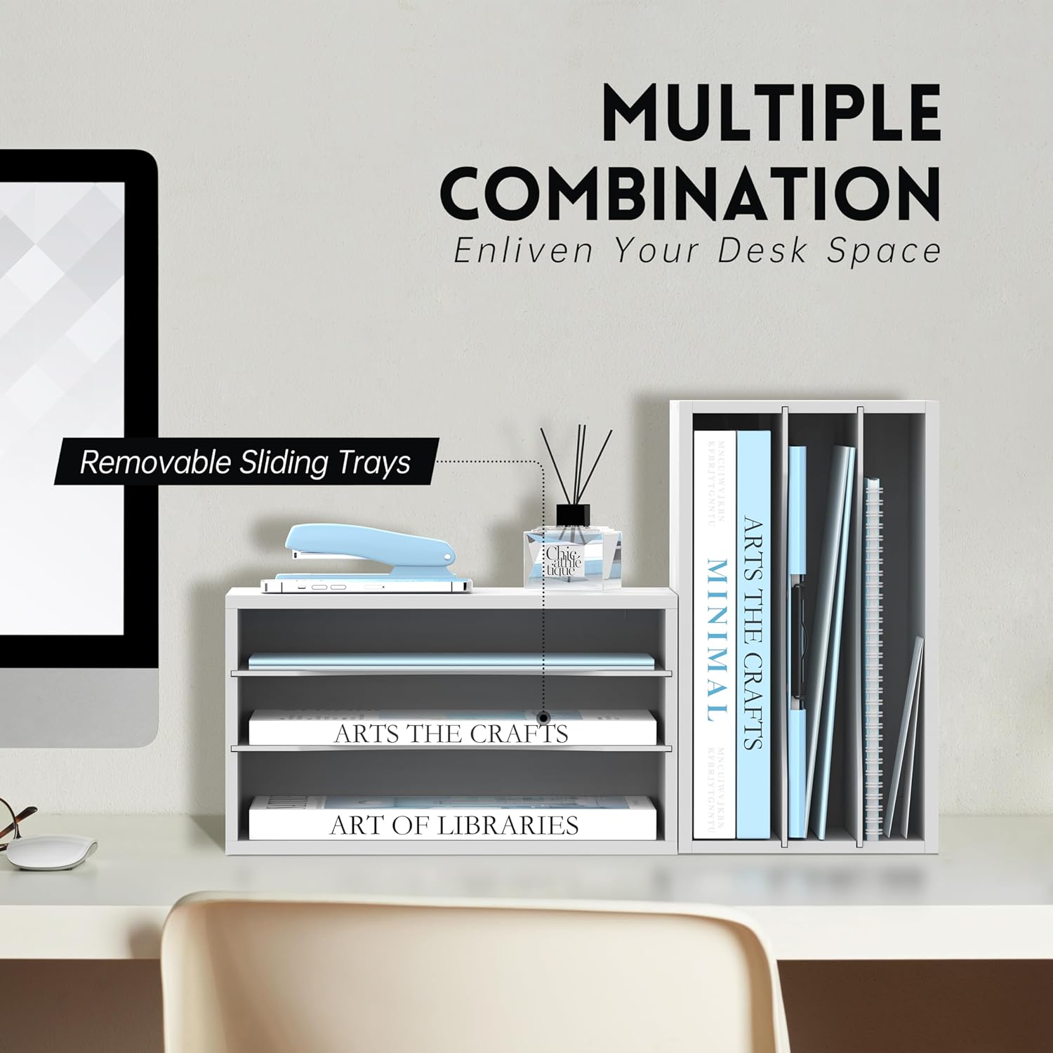 - [Elegant Shape & Color] The elegant design of our paper tray organizer makes it a great addition to any workspace. The smooth matte finish also help this desktop shelf add on perfectly to your office or home set up. The curved design of the shelves is beautiful and make you pick up the files easier.