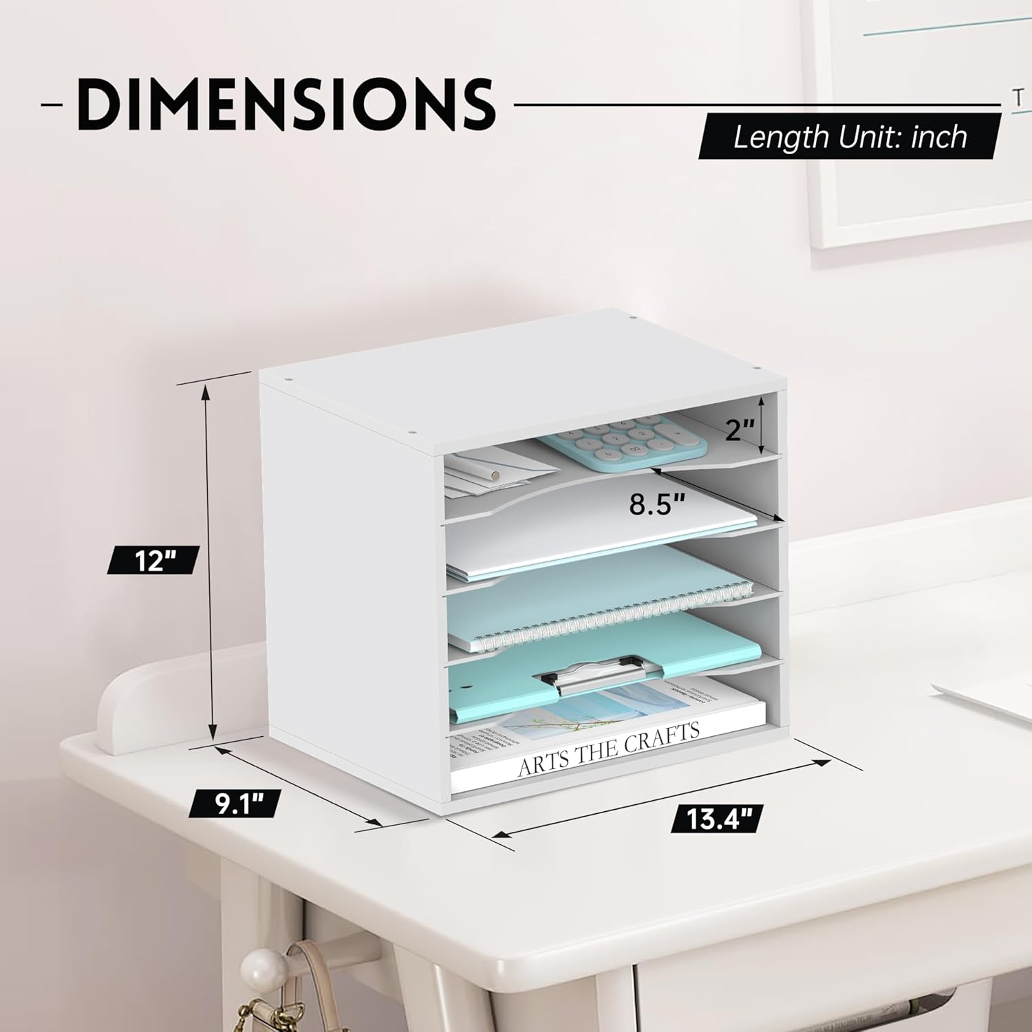 - [Flexible Desk Storage] The shelves of this wooden desk shelf for top of desk are adjustable to meet your personal needs. You can put it horizontally for standard documents, vertically as a book organizer or upright as a tub file bin. This desk file organizer is also a stackable paper tray. You can create more space by stacking this mail holder.