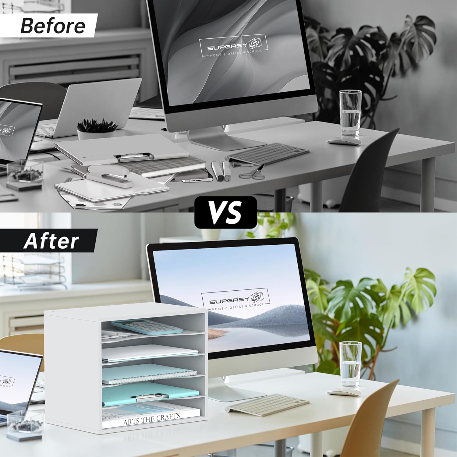 - [Sturdy & Strong] SUPEASY mail organizer is crafted from high-qualified MDF, something that's going to last long. The surface of this paper organizer is well-polished, making it smooth, scratch-resistant, waterproof, and easy to clean. The whole frame of this office desk organizer is so strong that it can hold a lot of weight for your desk organization.