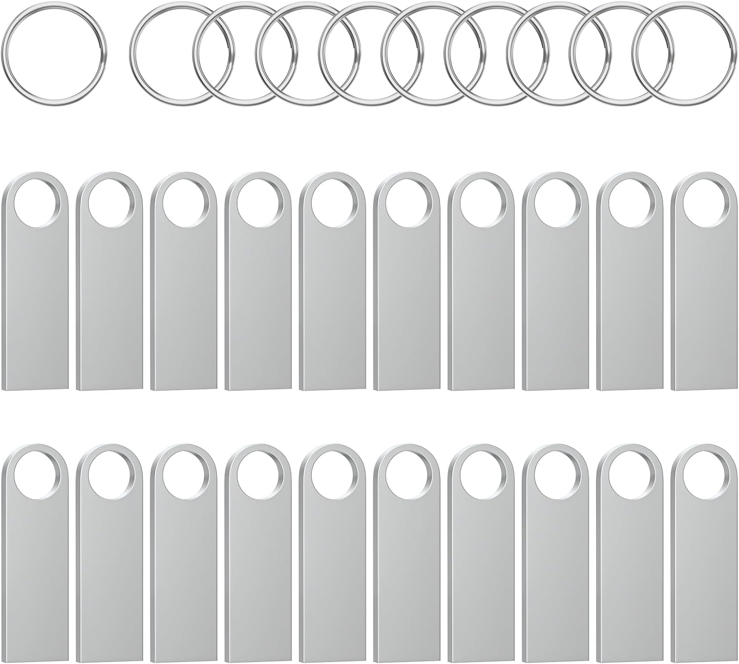 ABLAZE 1GB Flash Drive 20 Pack, Metal USB 2.0 Thumb Drives with Keychains USB Sticks Pendrives (Sliver)