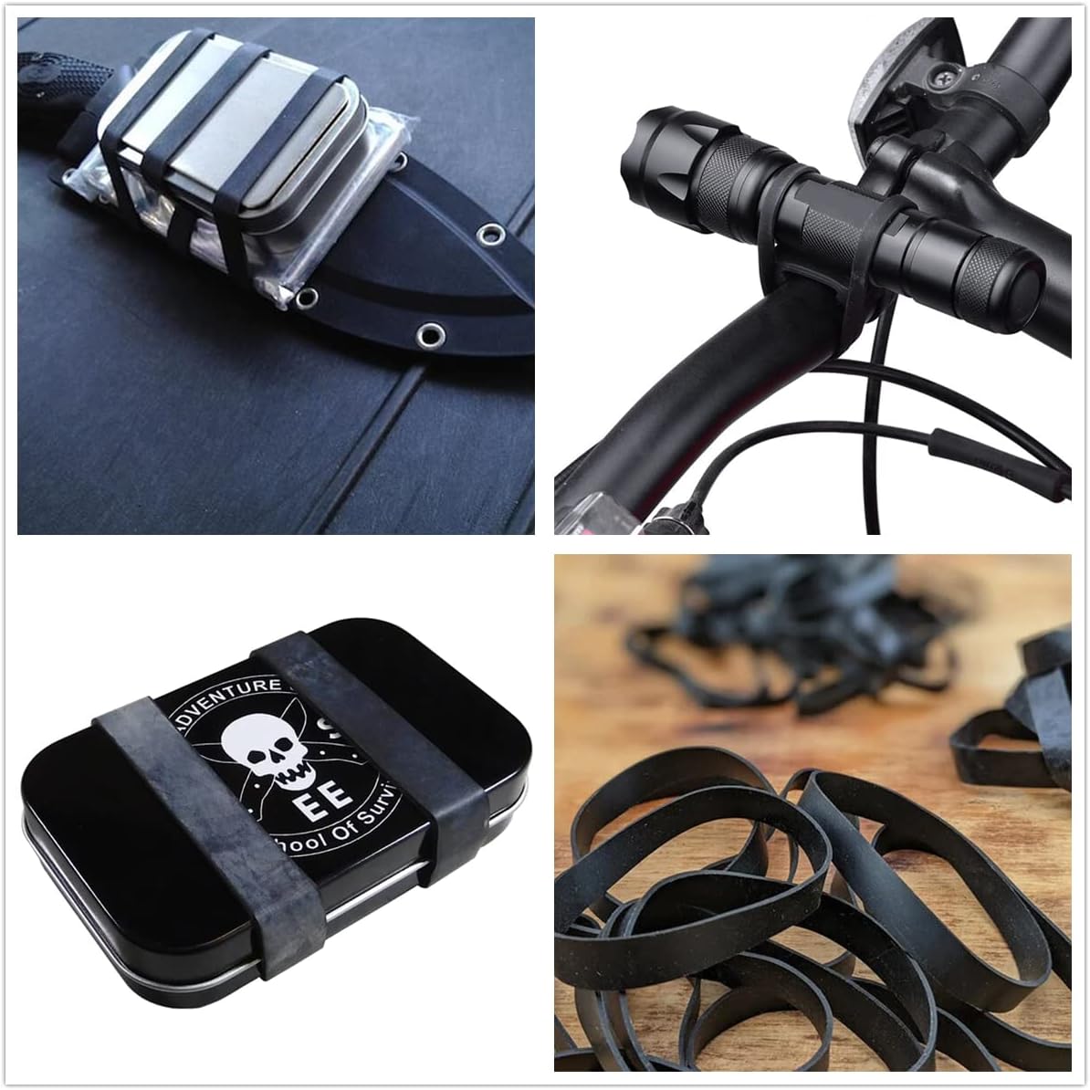 - 【Heavy Duty Rubber Bands】Our heavy duty rubber bands can secure containers, tools, knives. It can be widely used in various outdoor activities, such as camping, fishing, hunting, survival, cycling, kayaking, mountaineering, cycling, skiing, etc. These thin rubber bands are also suitable for daily use, to fix wires, keep your office tidy.