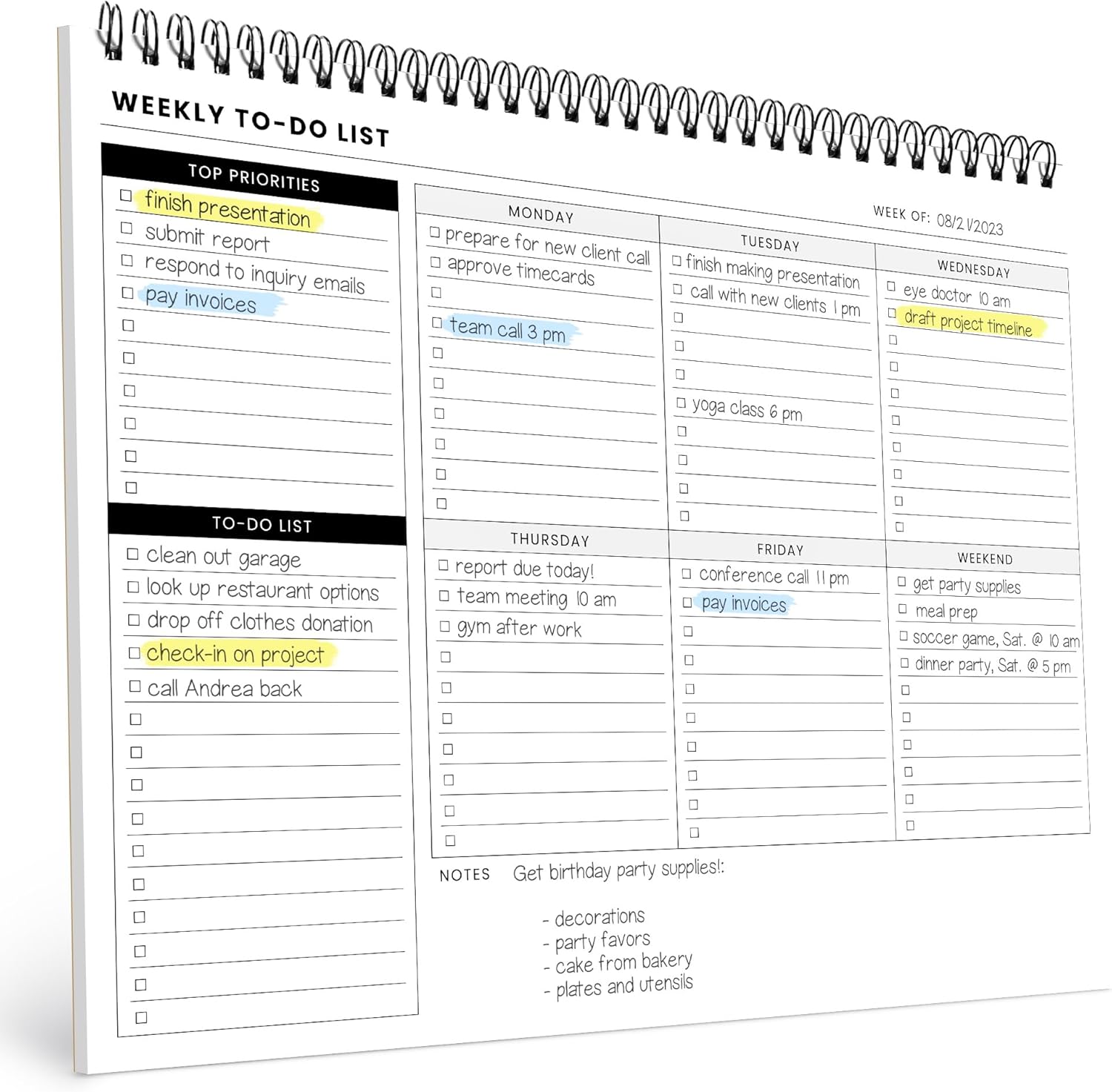 Of a Happy Kind Weekly To Do List Spiral Planner Pad - 8.5x11 52 Sheets - Desk Notepad with Multiple Sections - Undated Planning Notebook Checklist, Todo Agenda Plan