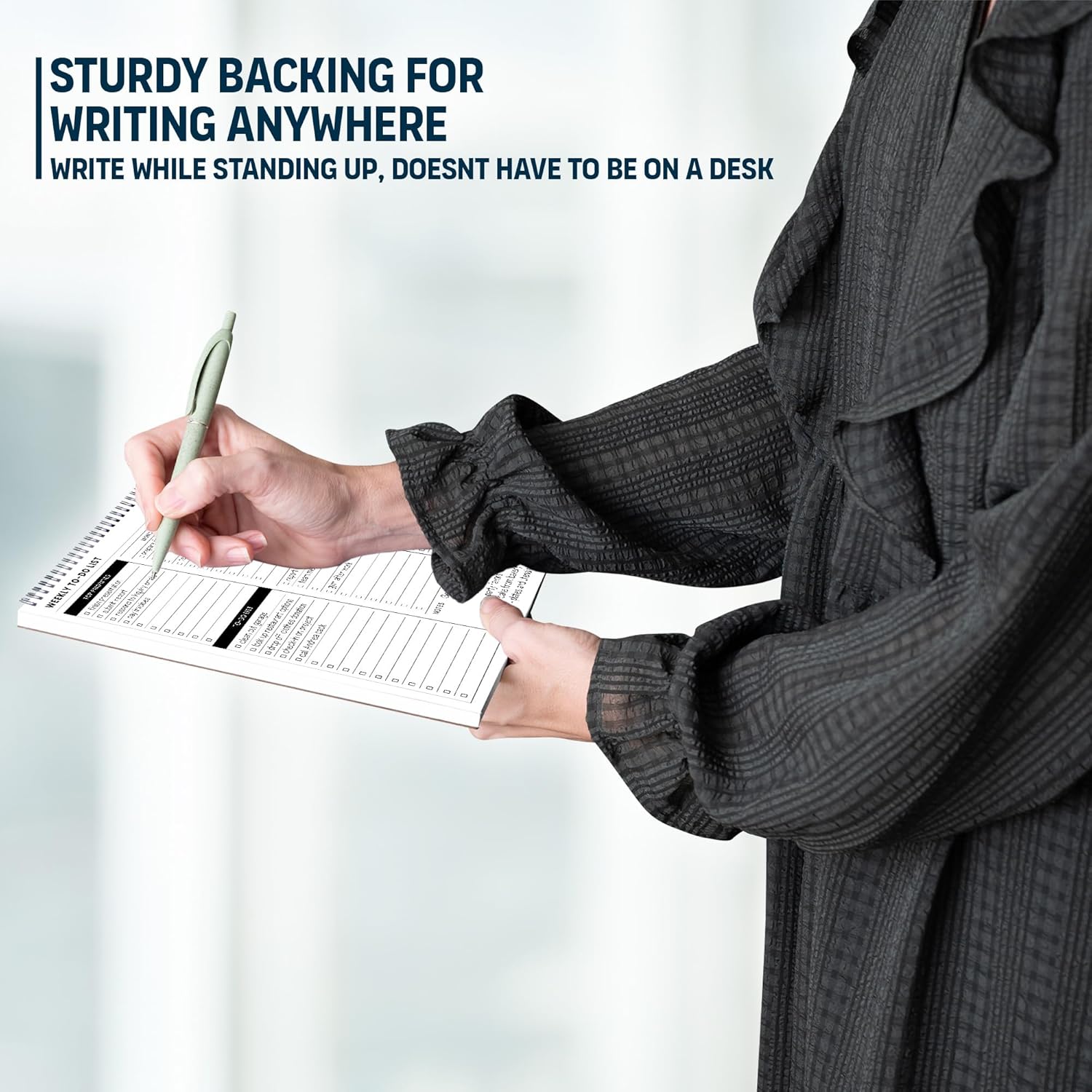 - Spiral Bound with Protective Cover: Flip through your to-do list with ease thanks to our twin spiral-bound notepad, allowing you to start a new page while keeping old ones for reference. Want to remove your lists when you’re done? No problem! You can tear them out as needed. Our notepad also features a protective plastic cover that keeps your pages safe from spills, scratches, and tears when you're on the go. Even better, the cover is transparent so you can see your to-do list page at a glance as you’re going throughout your day.