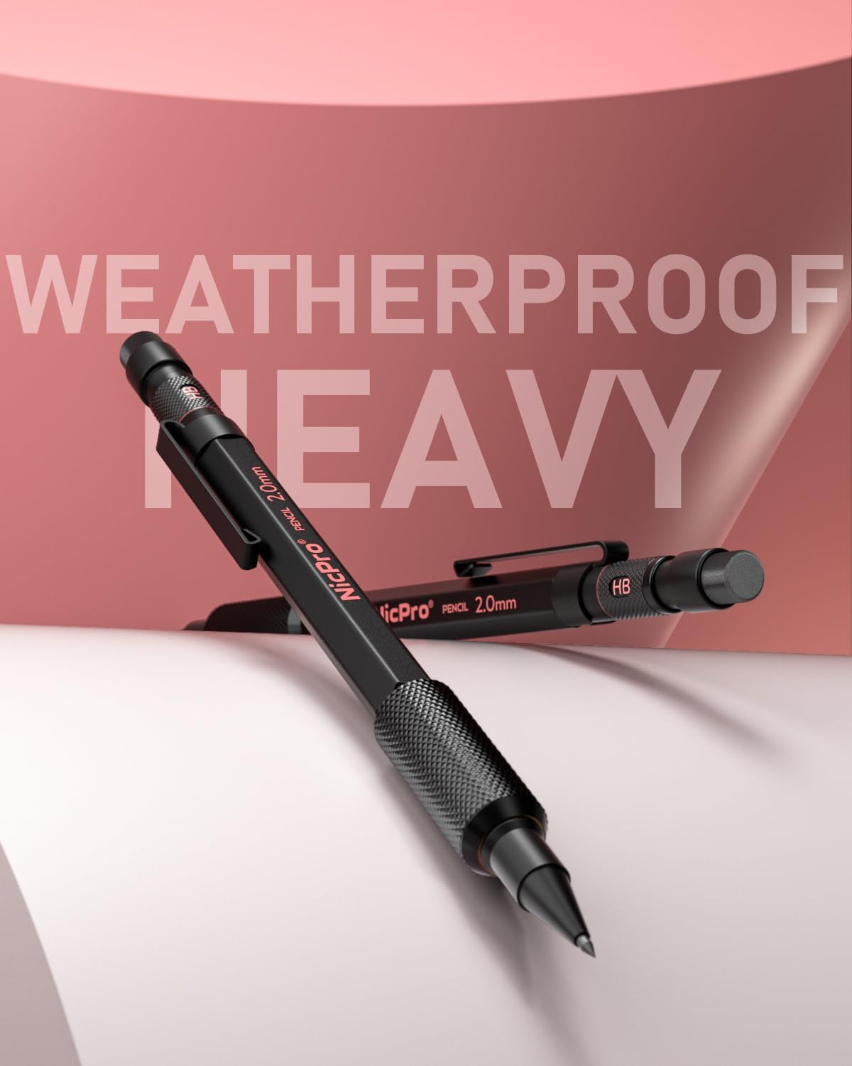 Nicpro 5 Pack 2mm Mechanical Pencils Set with Case, 65 Graphite Lead Refills (6B 4B 2B HB 2H 4H), 72 Colored Lead, Erasers -Weatherproof Metal Barrel, Heavy Duty Carpenter Pencil For Drawing Sketching