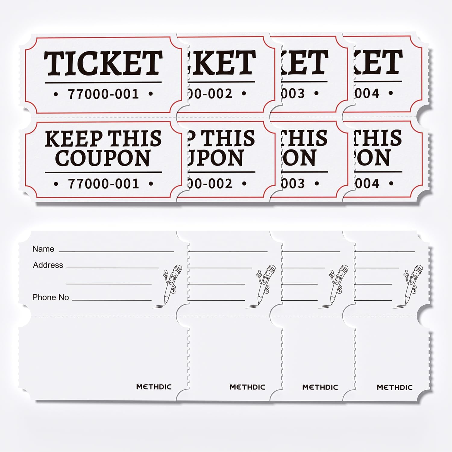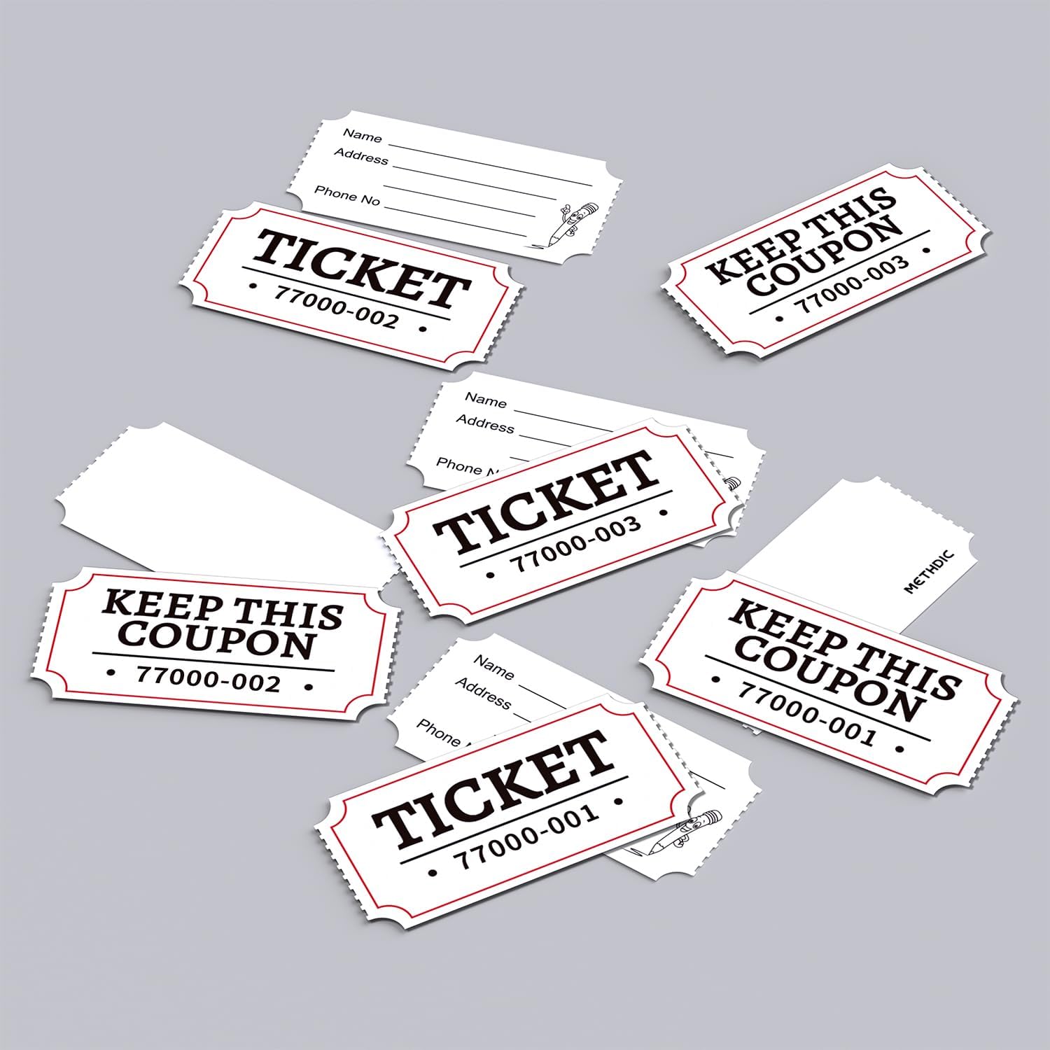 Methdic 2000 White Double Raffle Tickets Roll, Ticket for Events, Entry, Class Reward, Fundraiser & Prizes
