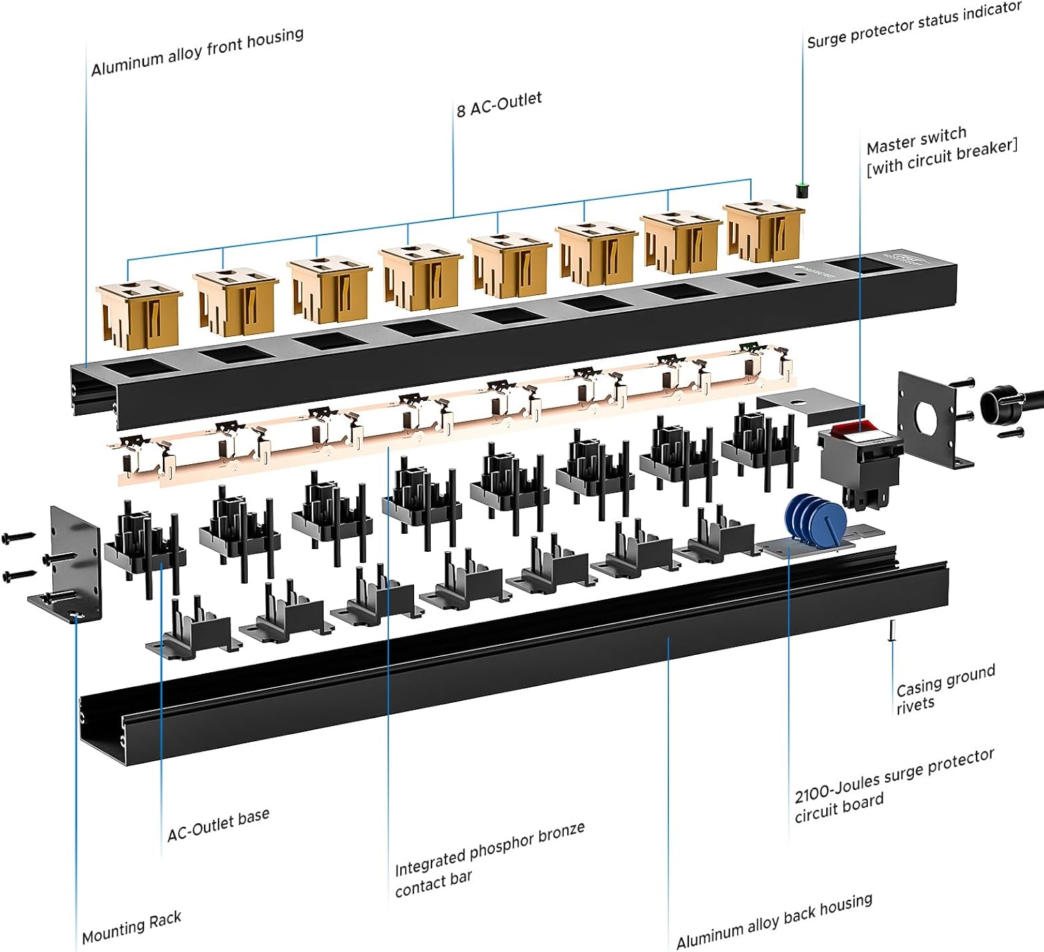 - [Versatility] - Makes it an ideal choice for a wide range of settings, including homes, garages, and workshops. Whether you're working on a DIY project in your garage, or running power tools and machinery in your workshop, this metal power strip can handle it all.