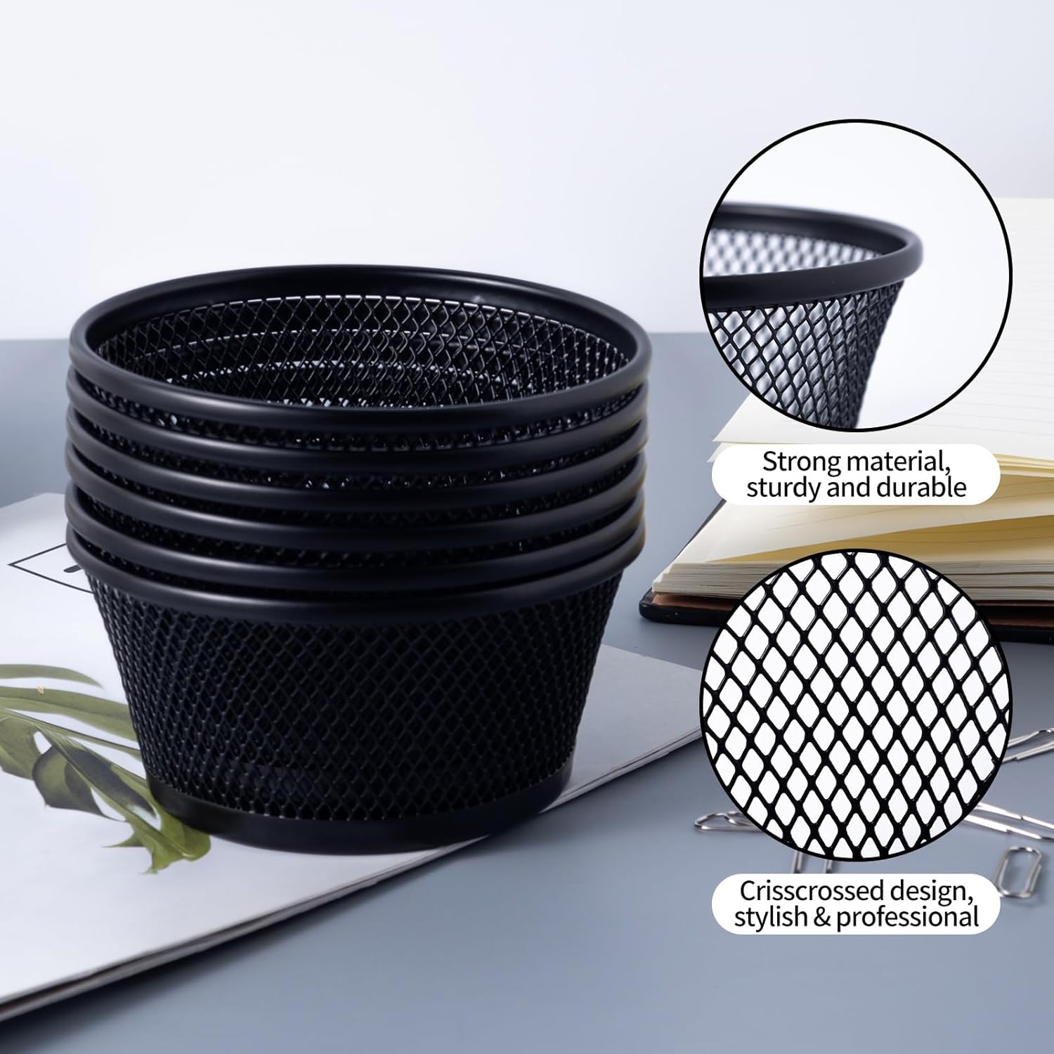 SLSON 6Pack Paper Clip Holder Wire Mesh Paperclip Dish Holders Desktop Round Paper Clip Dispenser for Desk Office Organizer Accessories,Black