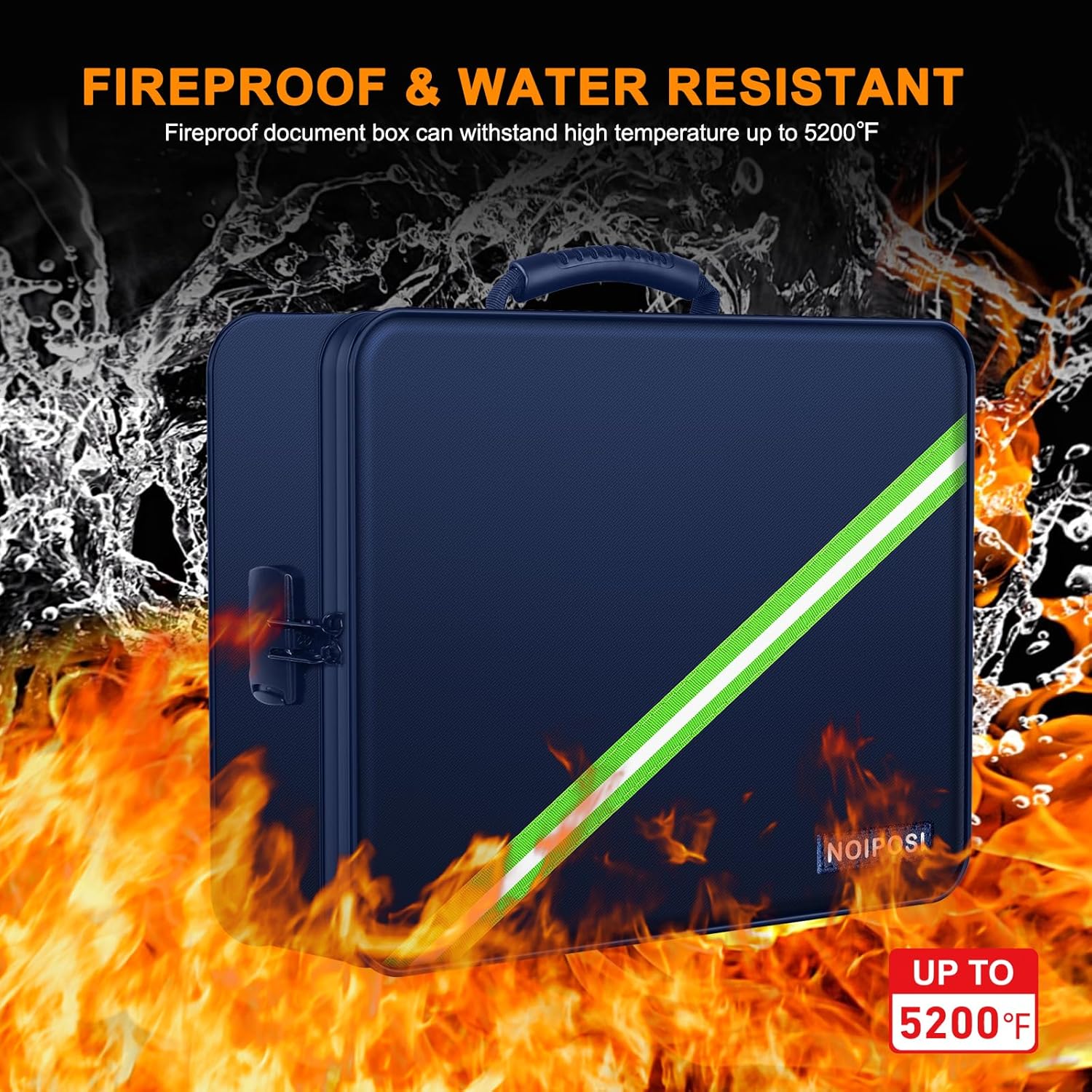 Noiposi Document Organizer with 5200℉ Heat Insulated,Waterproof and Fireproof Document Box,Portable Home Travel Safe Storage Box for Important Documents,File and Birth Certificate,Blue