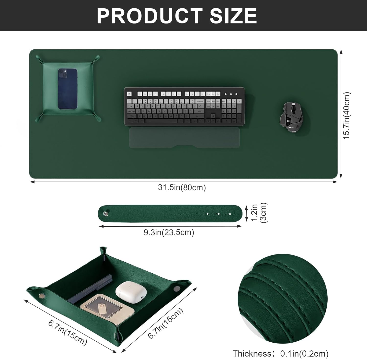 DAWNTREES Dual Sided Desk Mat,Leather Desk Pad,Cork Desk Mat Protector,with PU Leather Valet Tray Organizer,Large Mouse Pad,Desk Writing Pad for Office and Home(Dark Green 31.5"x15.8")