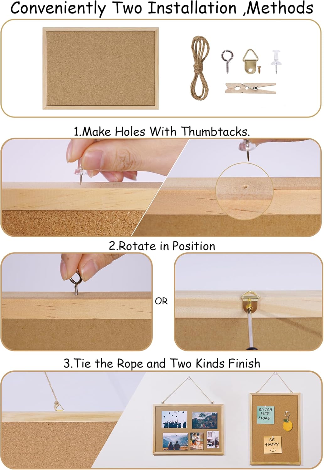- 【Easy to Use】:The Corkboards we provide detailed instructions are very easy to install, two styles of hooks also provide you with more options for mounting vertical or horizontal.
