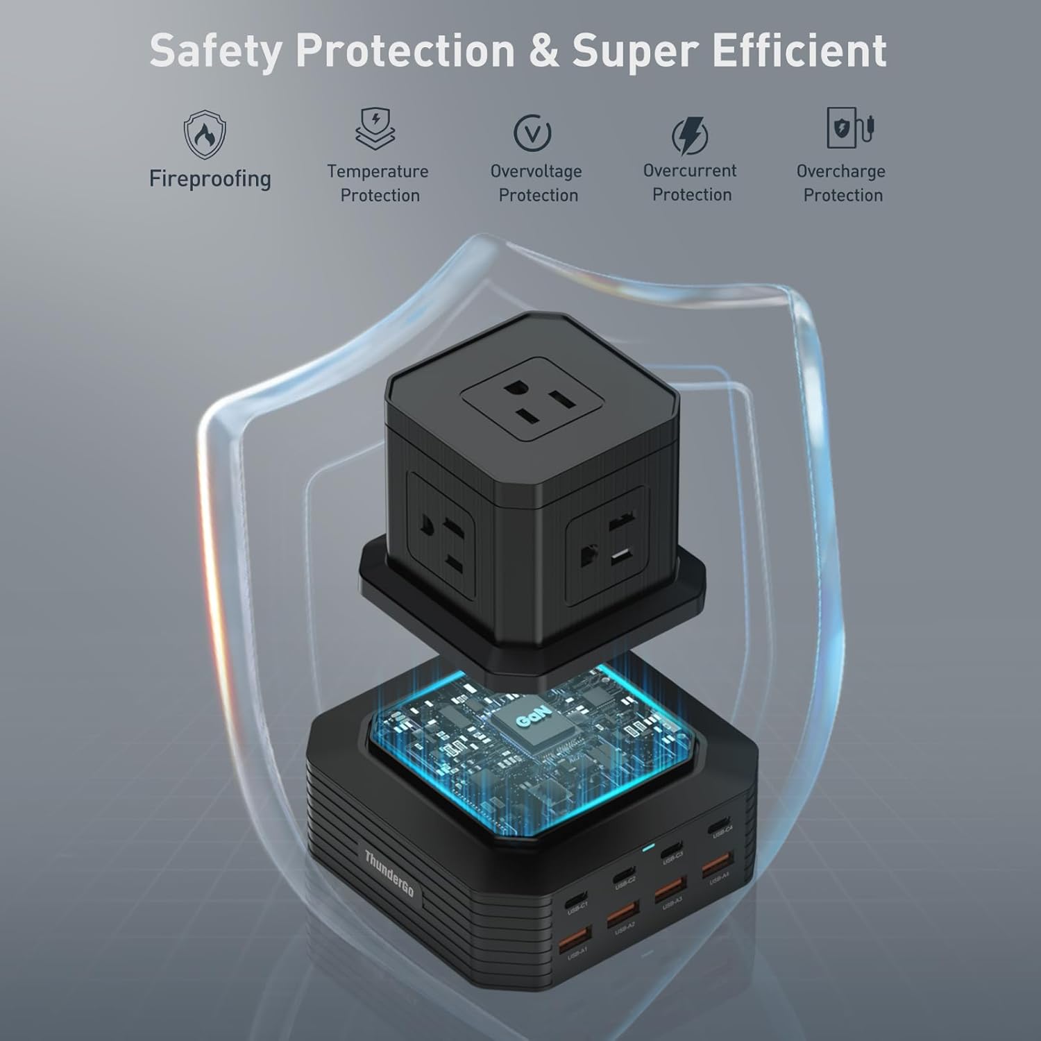 100W USB C Charging Station 13-in-1 Surge Protector Power Strip with 4 PD USB-C & 4 USB-A Ports, Adapt to MacBook Pro/Air, iPhone 15/14, iPad, and Multi-Device Office and Home Chargers