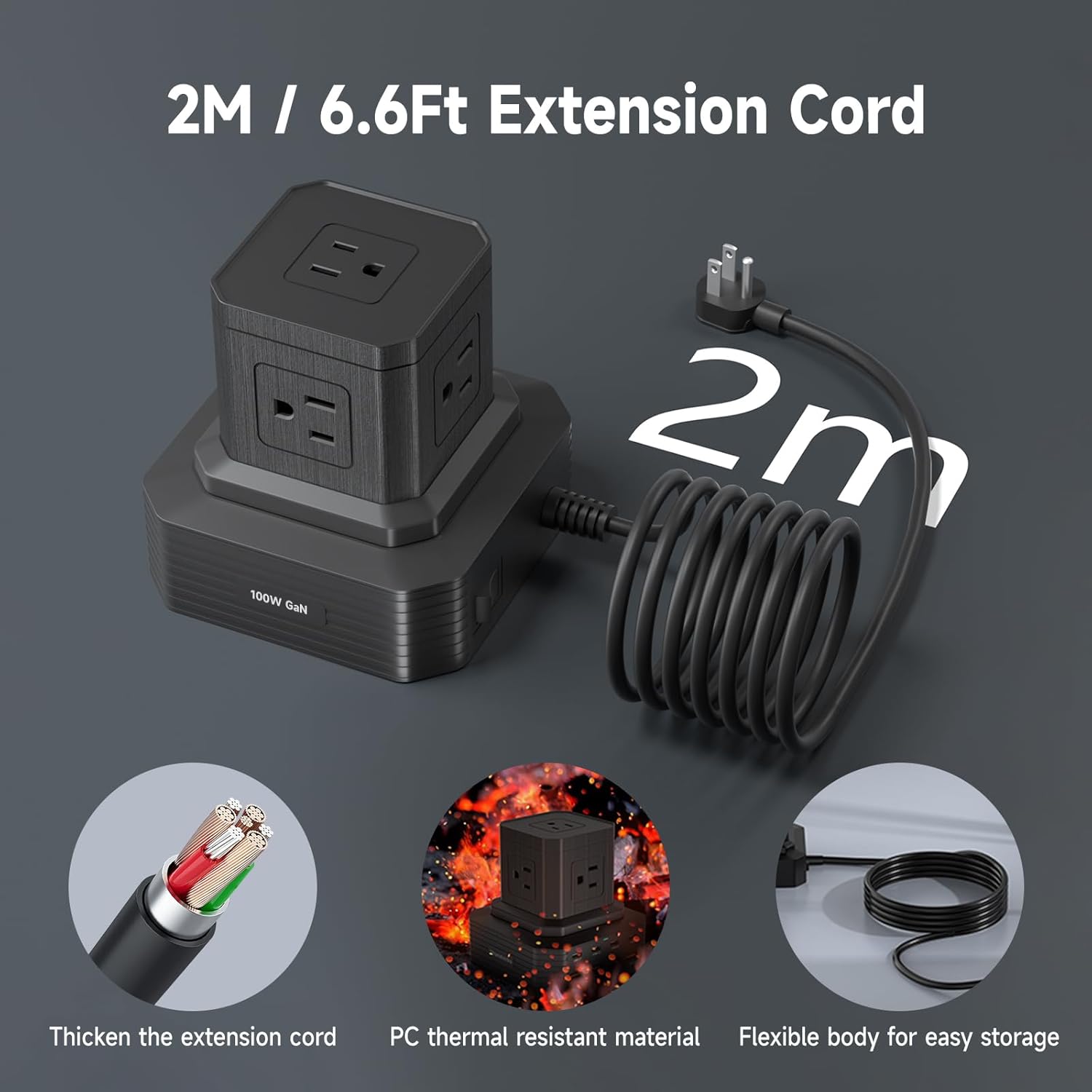 - 【100W Ultra-Fast Charging】This compact charging station with the vertical design, built-in with smart technology, detecting charging devices and deliver optimal charging speed automatically, compatible with most USB devices, Any C port used alone is a 100W output and also comes with a Socket function. Can fit in limited spaces and has a small footprint, perfect for desktop use to help reduce cord clutter, making it an all-in-one solution for your charging needs