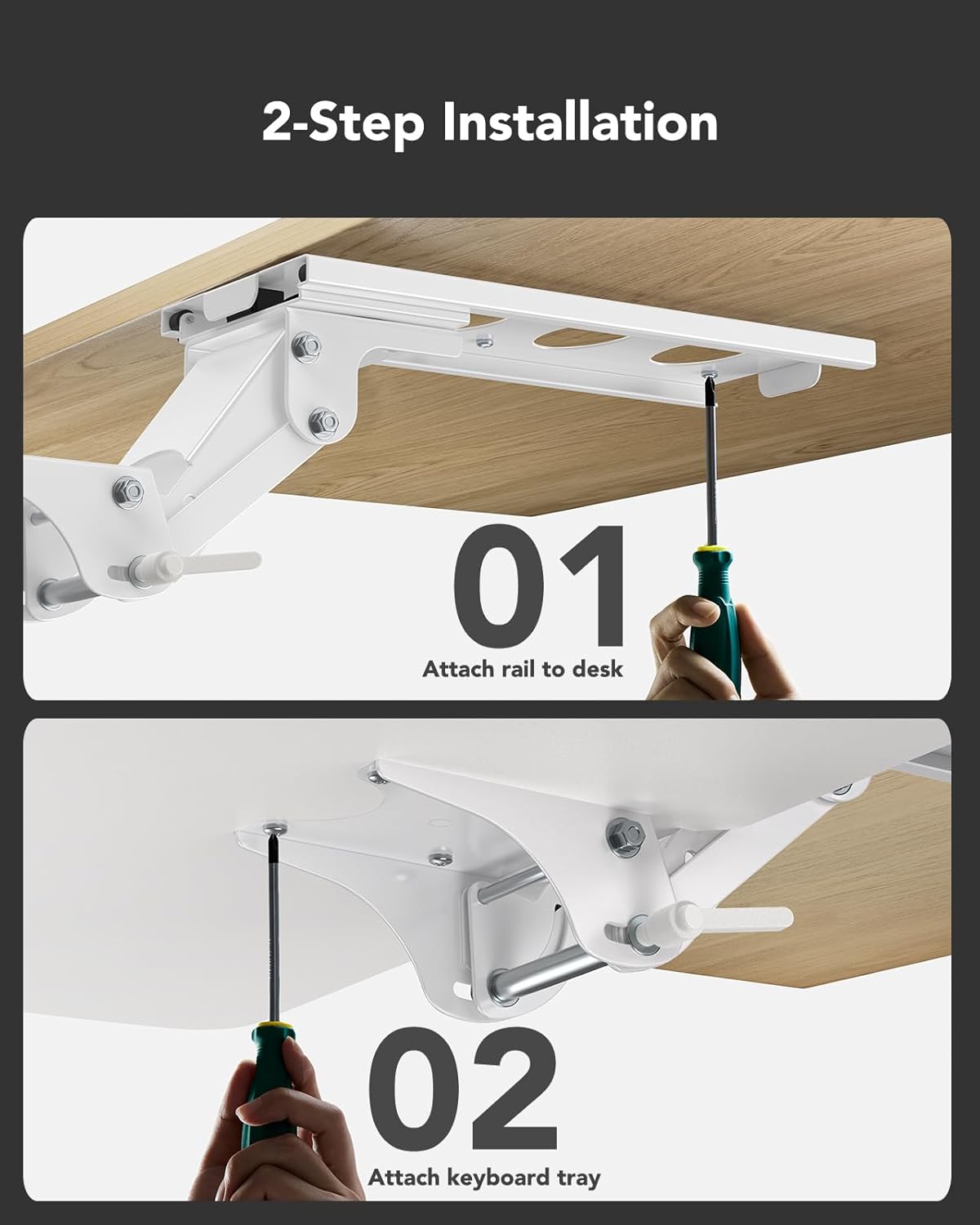- Easy Installation - All necessary hardware and instructions are provided for assembly. Please confirm your table before buying (Minimum Depth >21.26", Minimum Width >35.4", Desk Thickness >0.6"); This Keyboard tray can be mounted on solid wood, particleboard, density board and MDF board; Make sure there are no barriers under your desk before purchasing, such as beams or table leg.