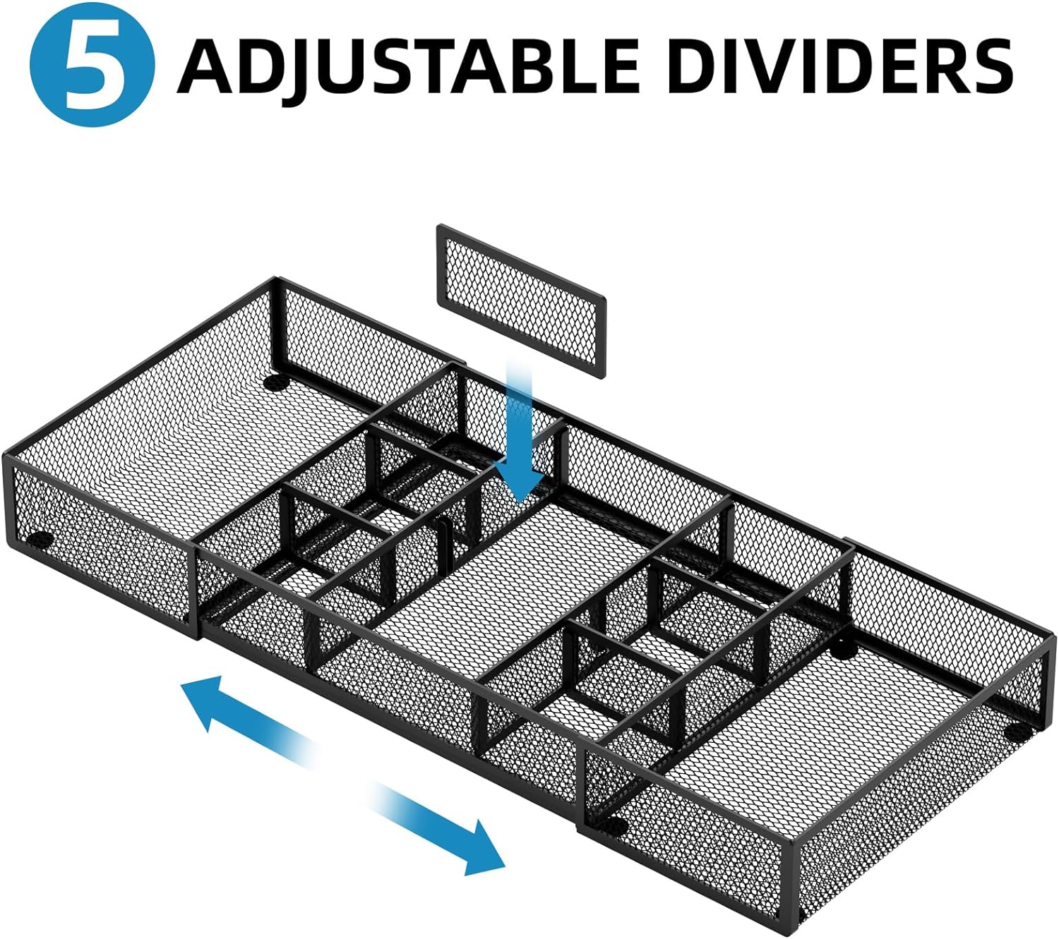 Marbrasse Expandable Desk Drawer Organizer, Mesh Drawer Organizer Tray with 10 Adjustable Compartments, Desk Organizers and Accessories for Office Supplies (Longer Expandable Drawer Organizer-B)