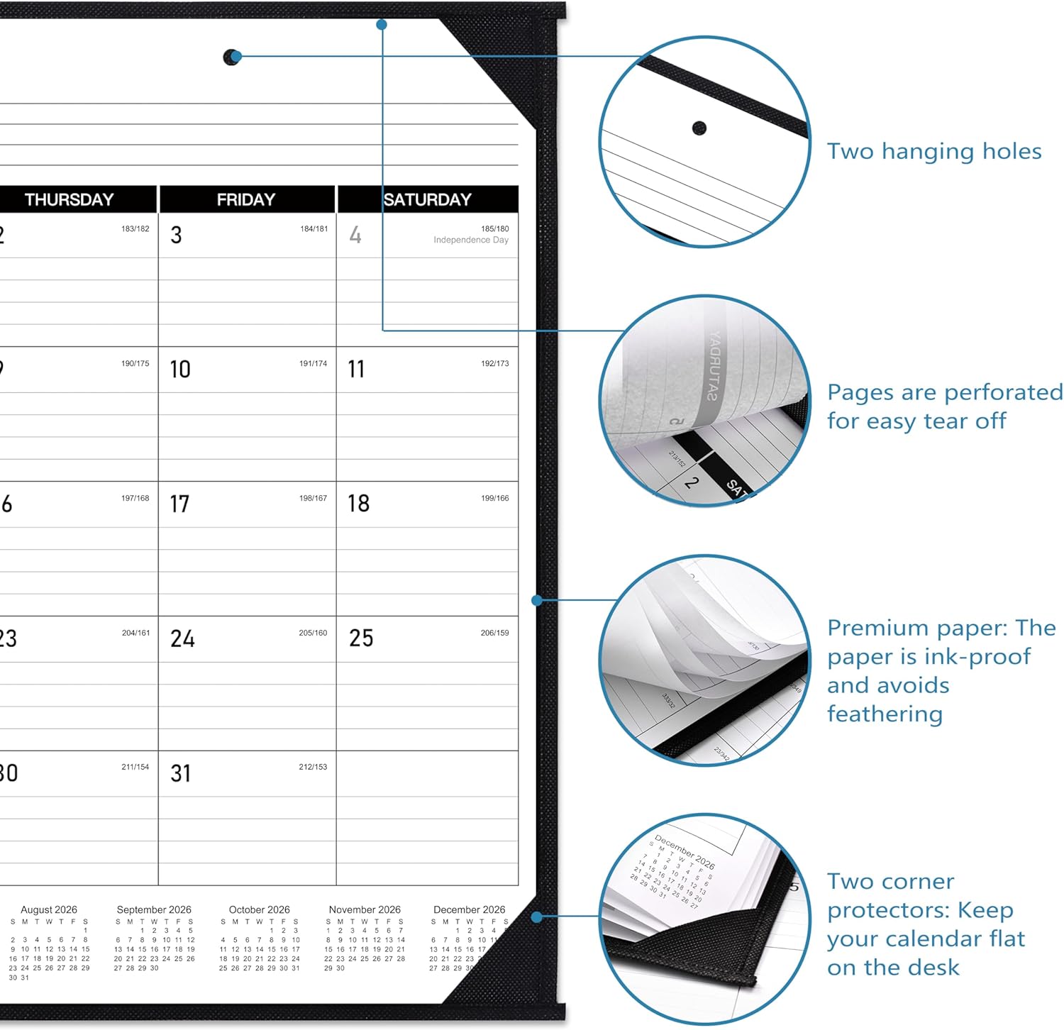 2026 Desk Calendar - JAN. 2026 – DEC. 2026, 22" x 17", Large Desk Calendar 2026, 12 Monthly Desk/Wall Calendar 2-in-1, Corner Protector, Desk Pad, Large Ruled Blocks