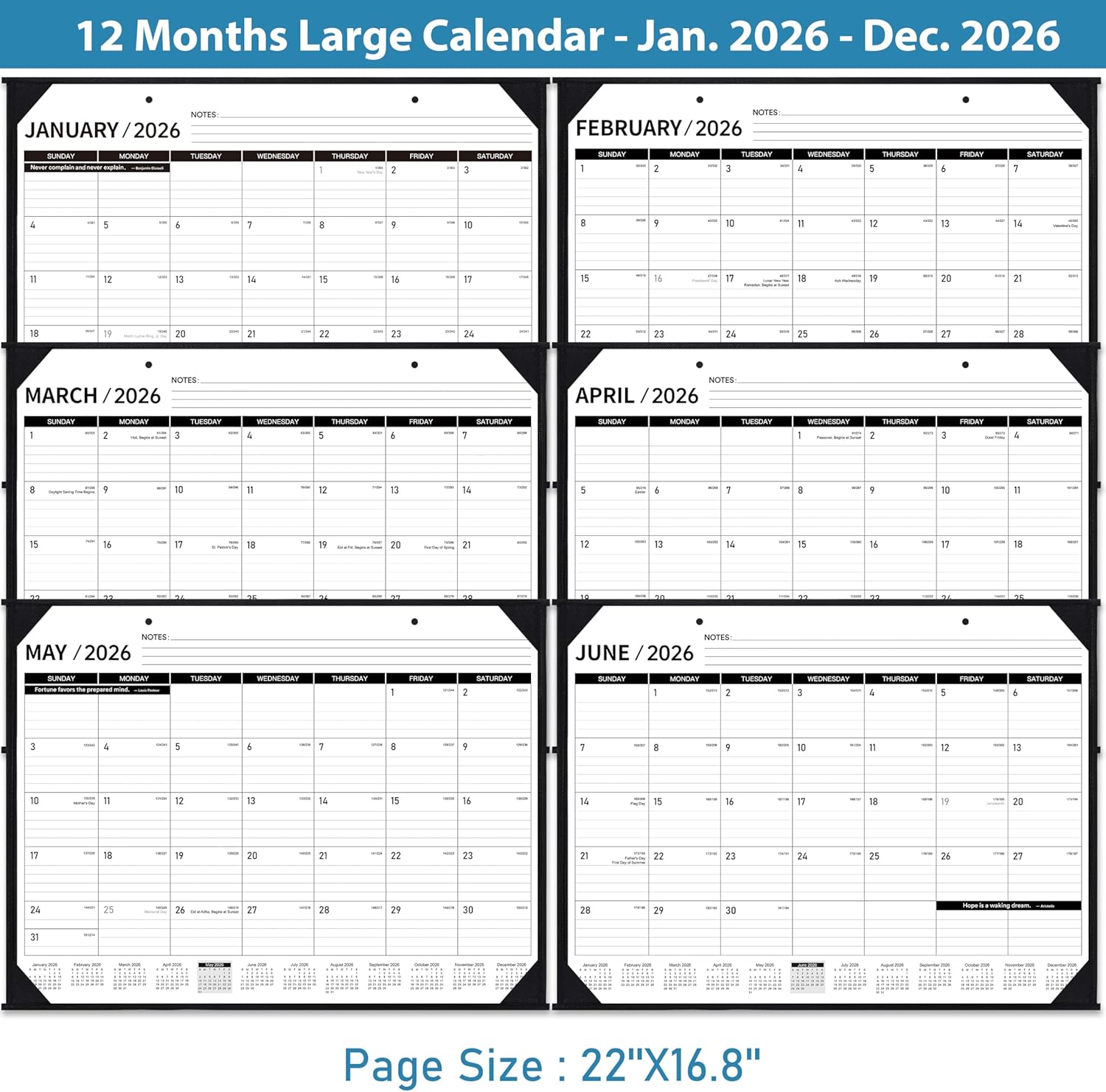 - Make Your Life More Efficient - The 2026 calendar desk is designed in classic black and white, with different quotes every month, which can be used with any scene. With this calendar 2026, you can take notes, ideas, meetings, etc. to improve your time management skills and make your life and work full of vitality and wisdom. To regular customers:This calendar will not be folded in half for shipping. Our packing is rolled, which can reduce the creases less. After upgrading, the back cover of this large calendar is changed from cardboard to woven cloth, which is more convenient for you to fold and store.