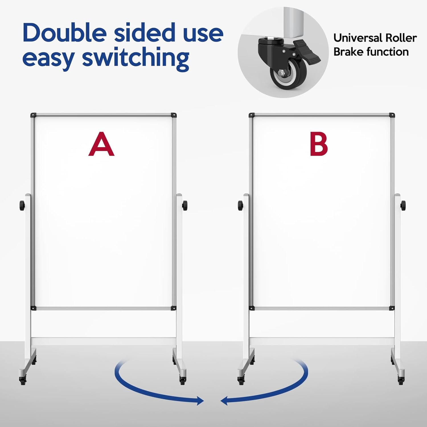 - Robust And Mobile: Built with a sturdy all-aluminum padded frame and four steel casters with brakes, our mobile whiteboard allows for smooth 360° rotation and easy movement. Securely lock it in place by engaging the brakes for added stability.