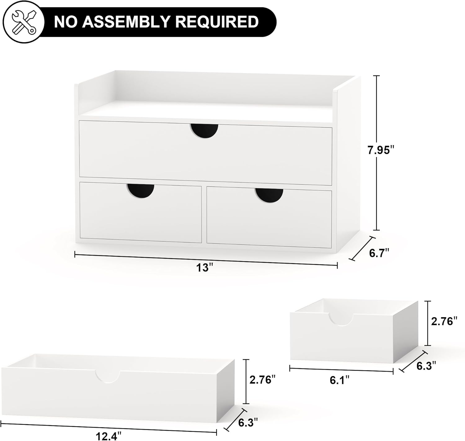 Bamboo Desk Organizer with Drawers Desktop Storage Drawers for Bills Office Supplies Kitchen Utensils Organizing Tool for Home Classroom Organization No Assembly (White with Shelf)