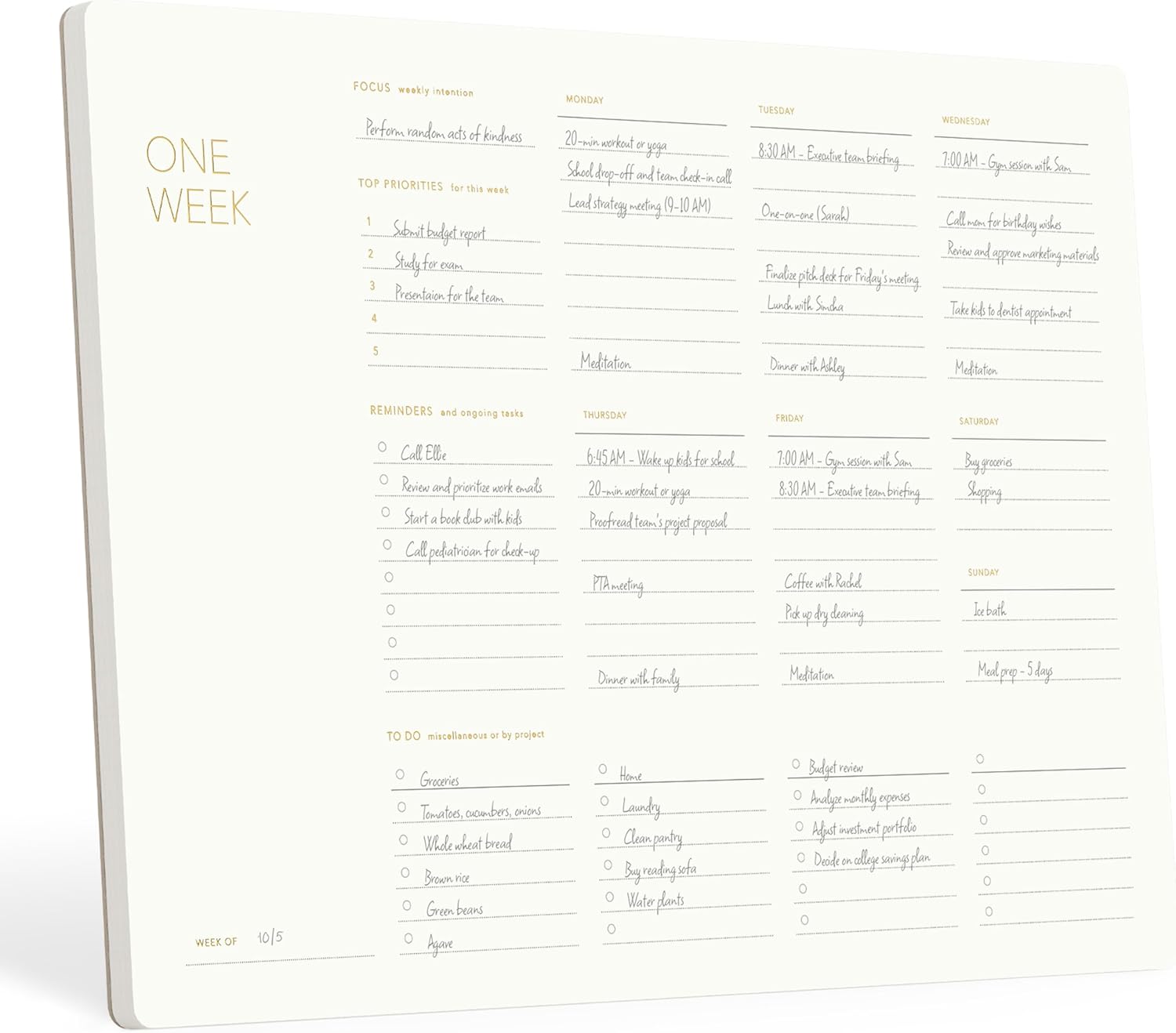 One Week - Elegant Undated Weekly Desk Planner, Gold Foiled, A4, Minimalist Weekly To Do List Notepad, Daily Schedule, Work Week Planner Pad, Eco-friendly, FSC™ Certified