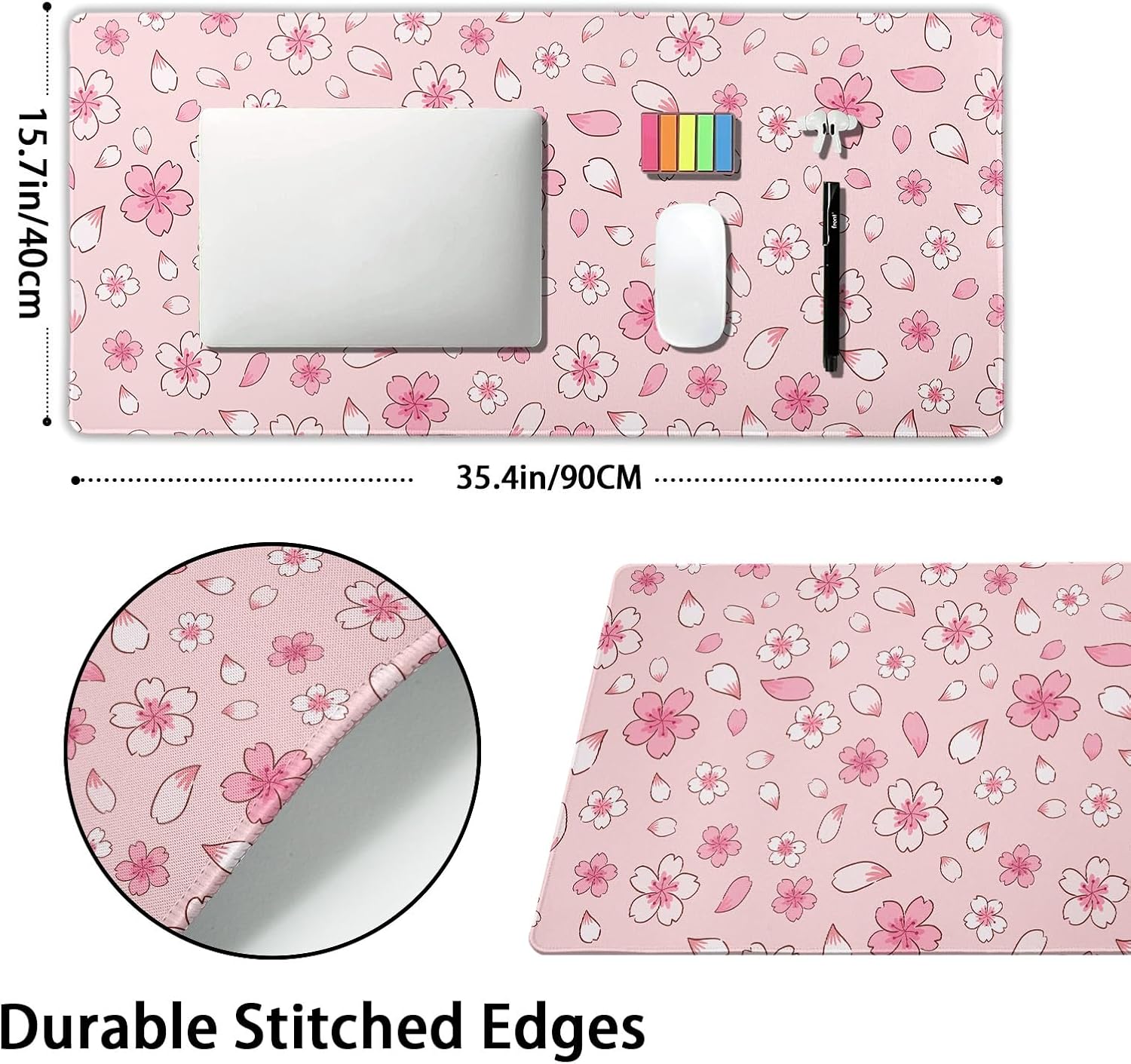 - ★【Superior Control Surface】:Cute Cherry Blossom computer large mouse pad designed with superfine fiber braided Material,smooth surface will provide you with frustration-free mouse movement.The performance-tuned keyboard pad greatly enhances control accuracy and speed in working or gaming.