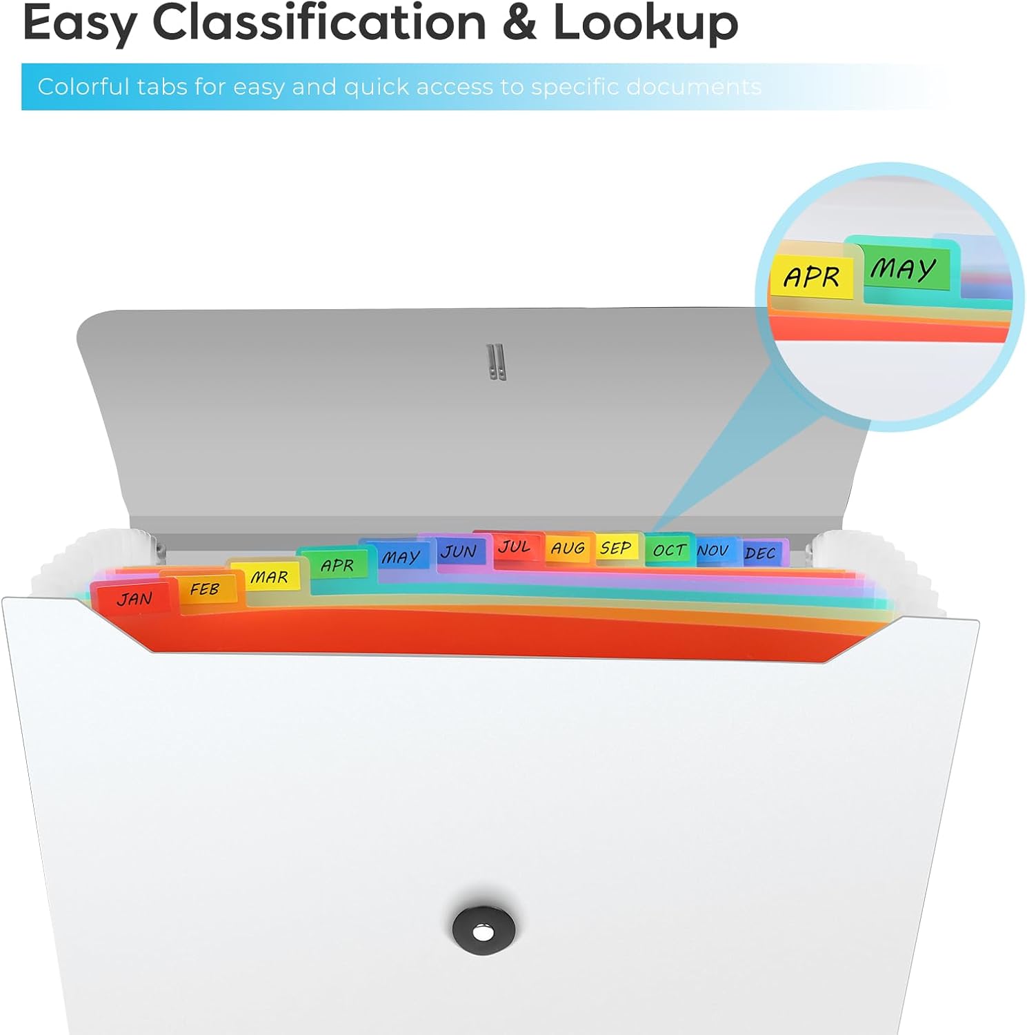 Accordion File Organizer, Expanding File Folder for Sorting Documents and Papers, 13 Pockets Receipt Organizer for Home, Travel and Office Use (White)