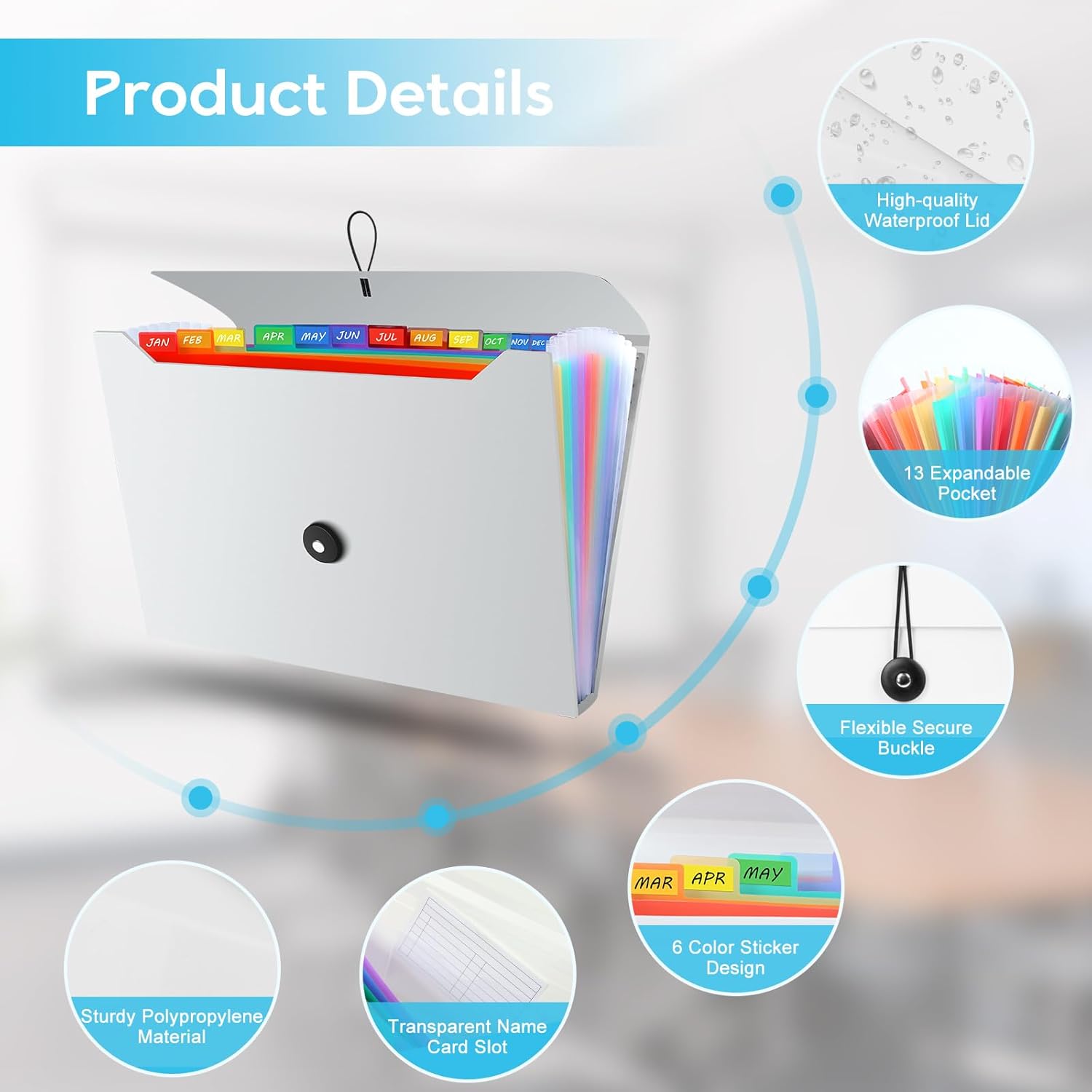 - 【COLORFUL DESIGN】Our expandable file folder features rainbow-colored inner pages and small colored labels for easy classification, making it both functional and visually appealing