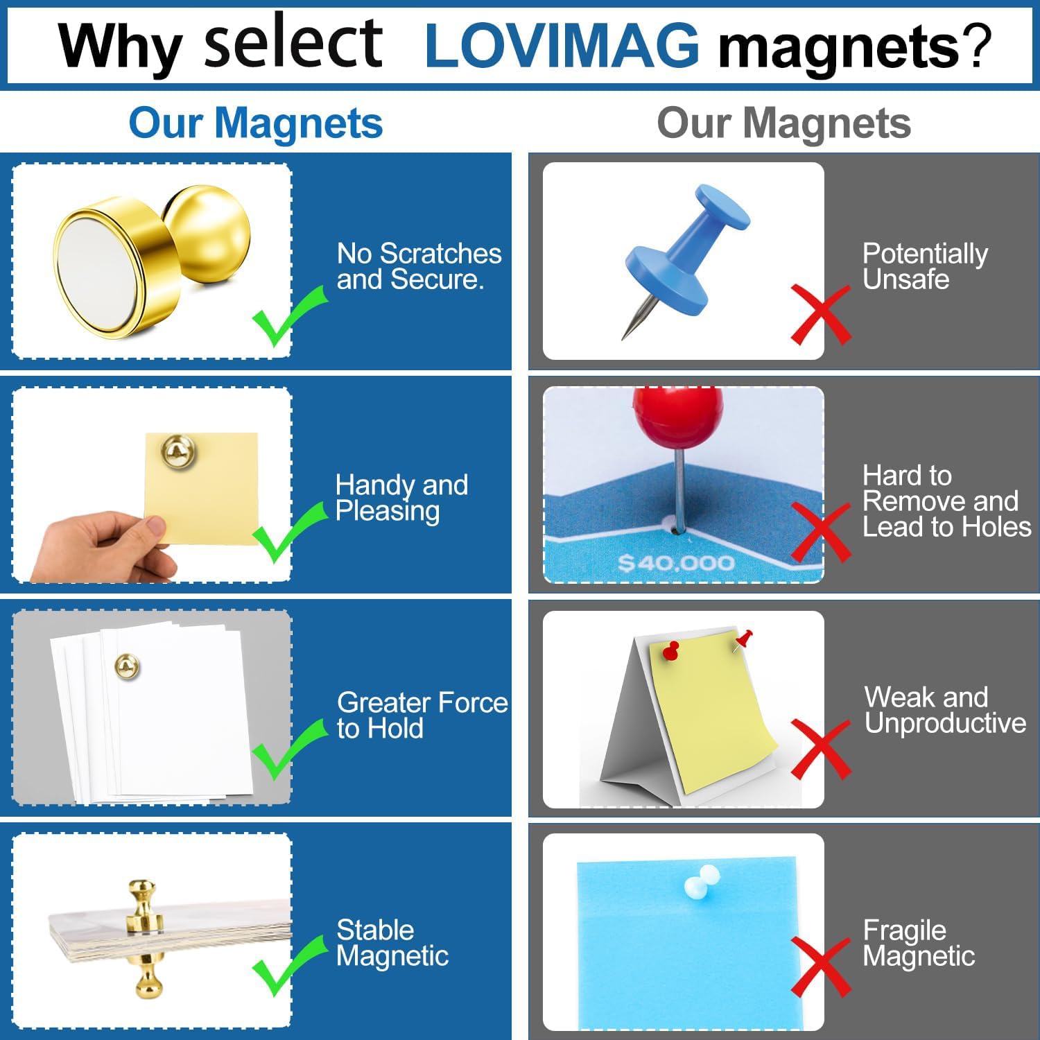 LOVIMAG Fridge Magnets, 18Pcs Refrigerator Magnets Strong Fridge Magnets for Whiteboard, Small Magnets Gold Magnets for Kitchen Accessories,Office Aaccessories,Fridge Accessories, Decorative Magnets