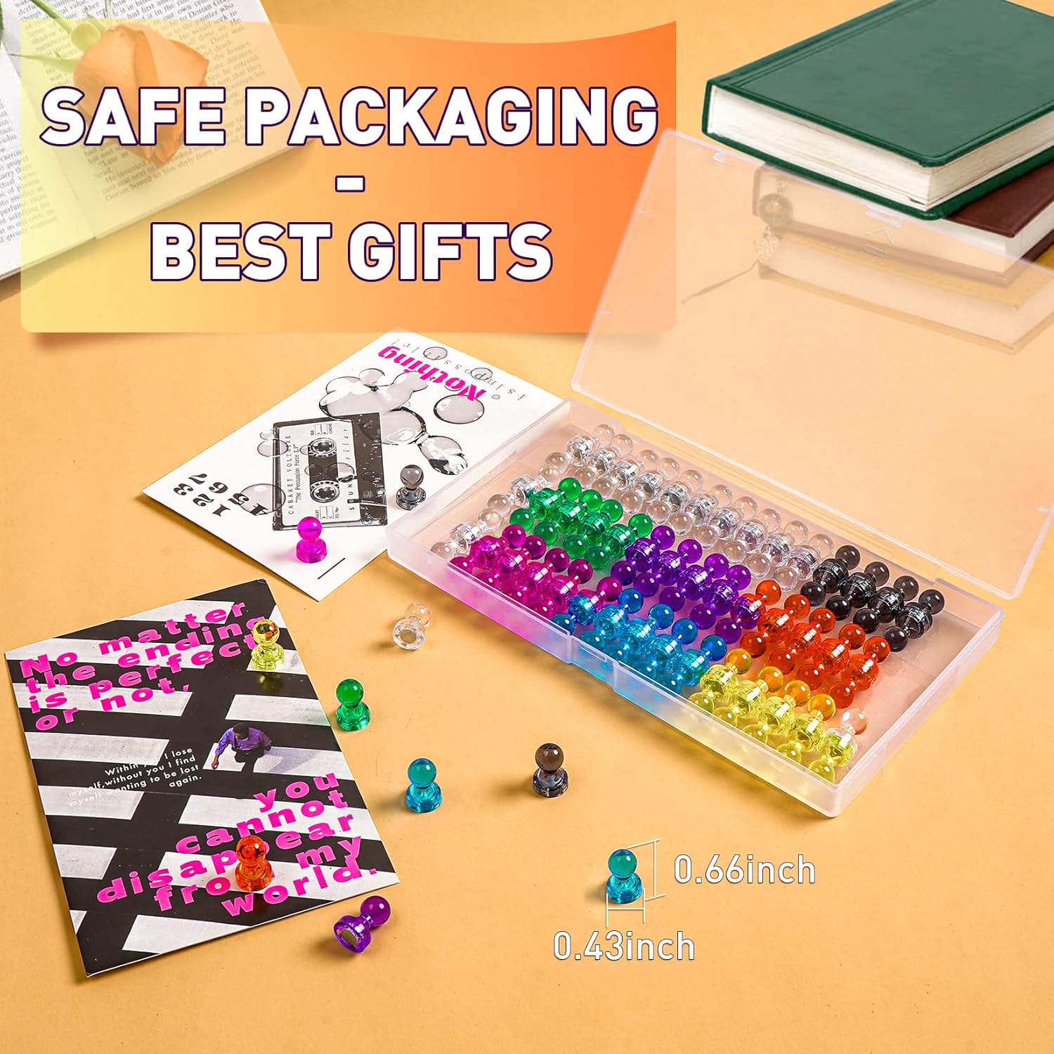 - 【Package Contents】This set includes 96 pieces magnetic thumb tacks neatly packed in a transparent plastic box, making it a great gift for family, teachers, and friends. It offers 8 vibrant colors, including white (26pcs), purple, pink, blue, green, orange, yellow, and black (10pcs each).