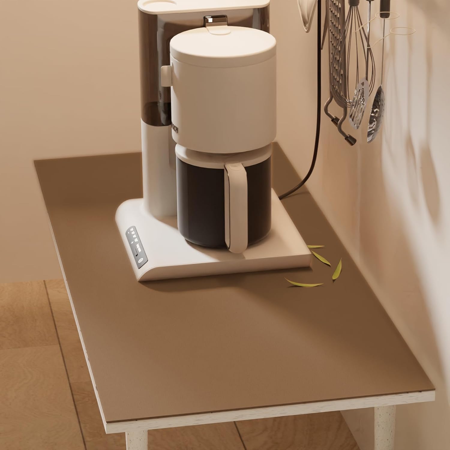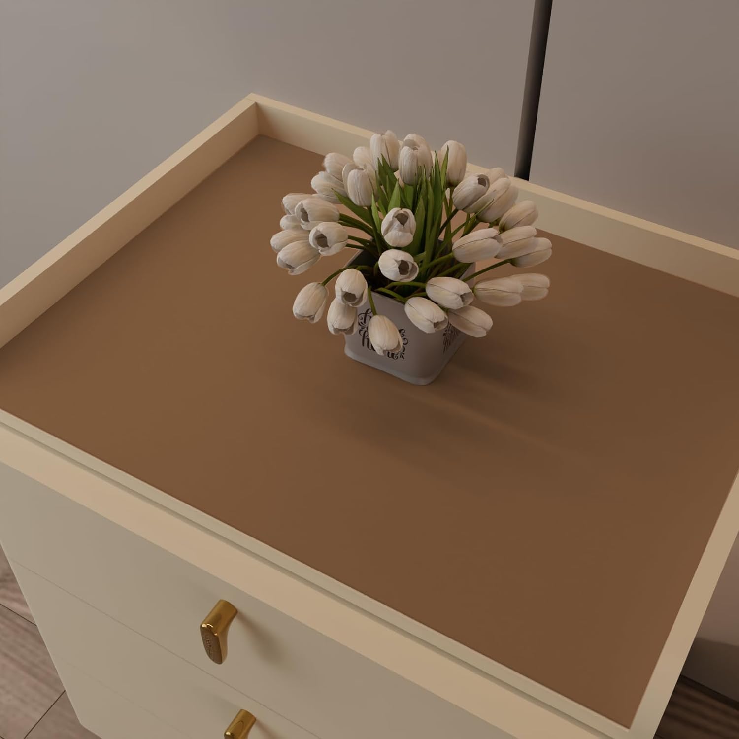 Leather Desk Mat,1.8mm Thick,15.75x23.6 Inch Desk Cover,Nightstand Cover,Night Stand Cover for Top,Night Stand Cover,Side Table Cover,Night Stand Mat(Mud Color+Champagne Gold,15.75x23.6)