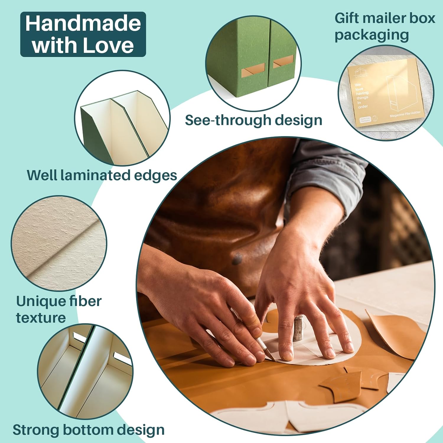 Magazine Holder - File Holder and Desk Organizer, Paperboard Book Organizer and Storage Box for Documents, Magazine Holder Rack for Classroom, Home, and Office (Leaf Green, 4-Pack)