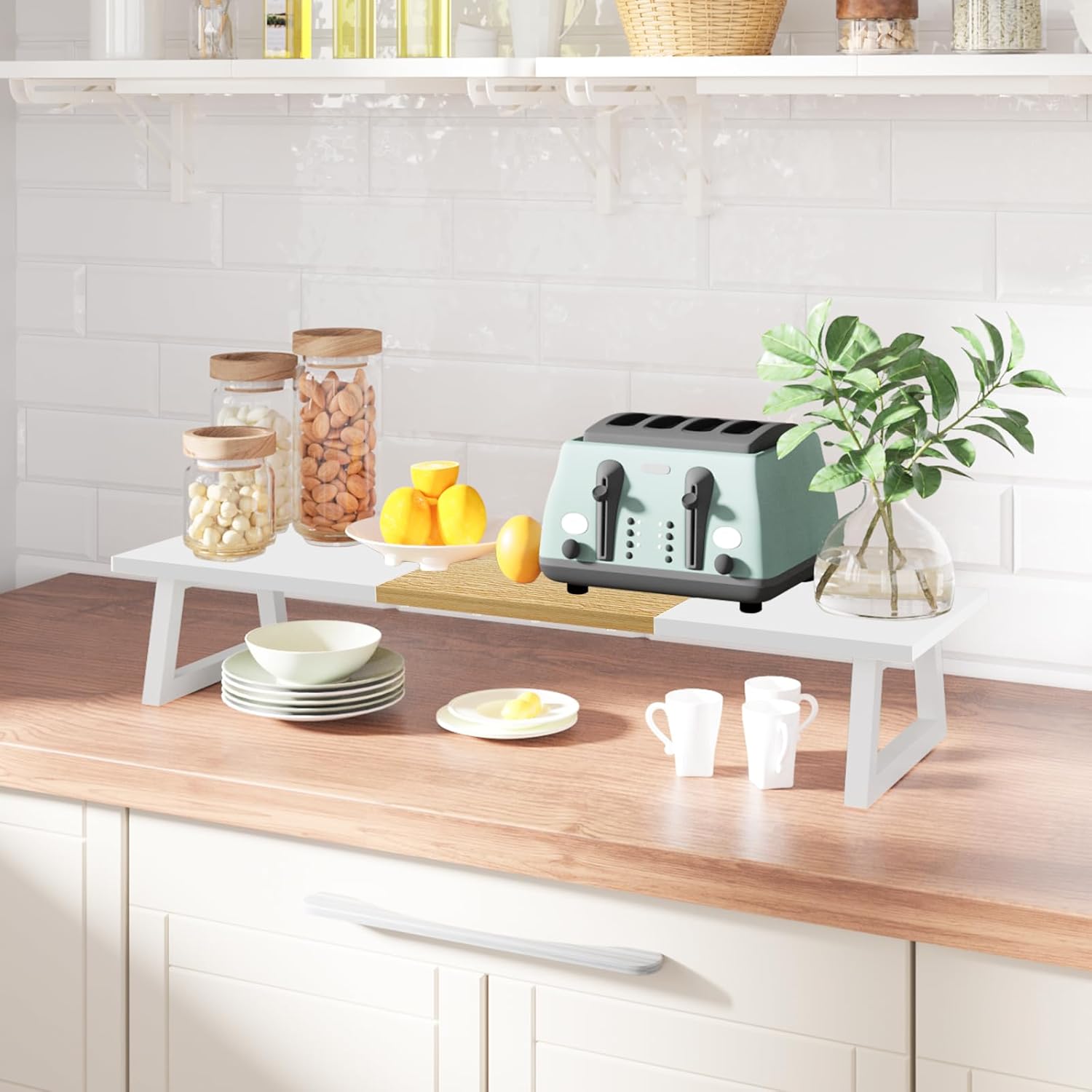 TEAMIX Dual Monitor Riser with Metal Leg, 31.5 inch Long Monitor Stand Riser Wide TV Stand Riser White Monitor Stand for 2 Monitors Wood & Steel Desktop Riser for Home Office Desk Organization