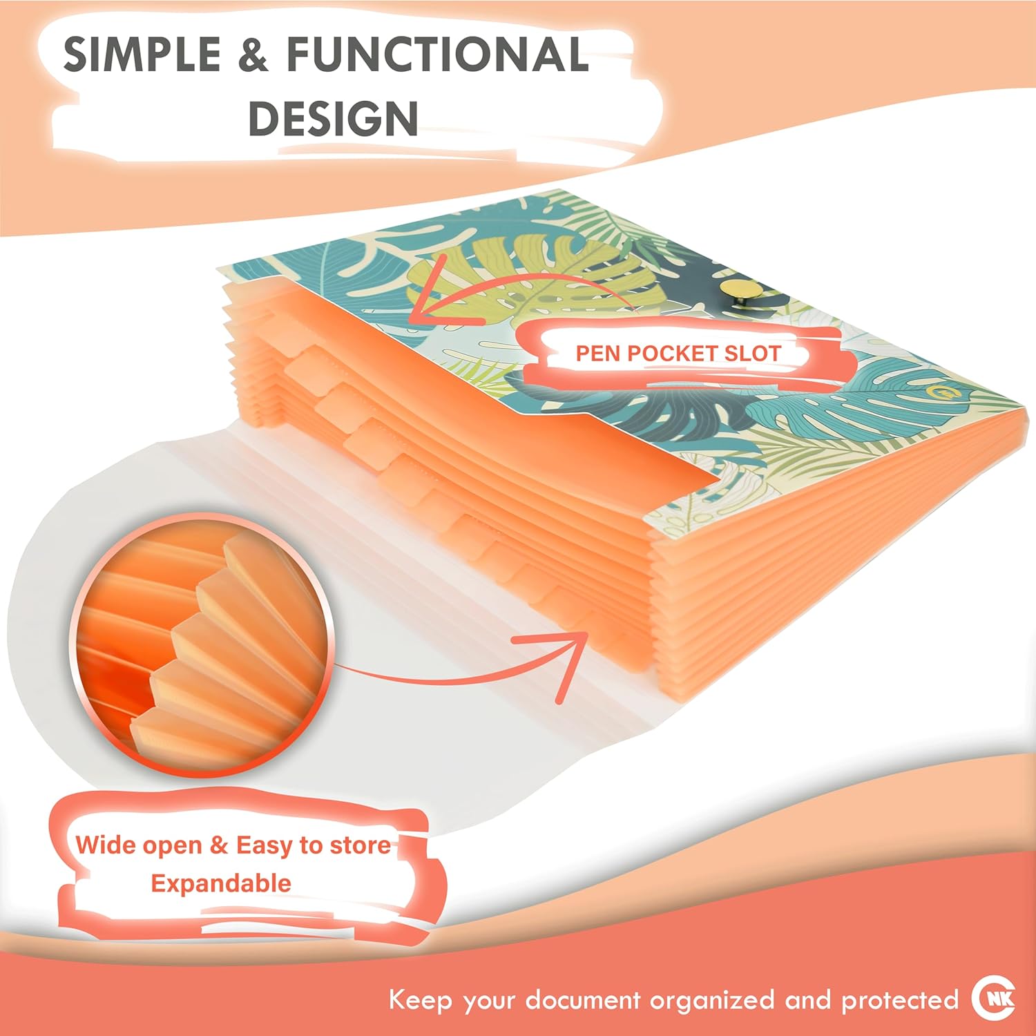 CNK File Folders Organizer with 13 Pockets Accordion Expanding Folder Documents Receipt Document Paper Pocket Filing Accordian Important expandable holder files alphabetical Labels Letter