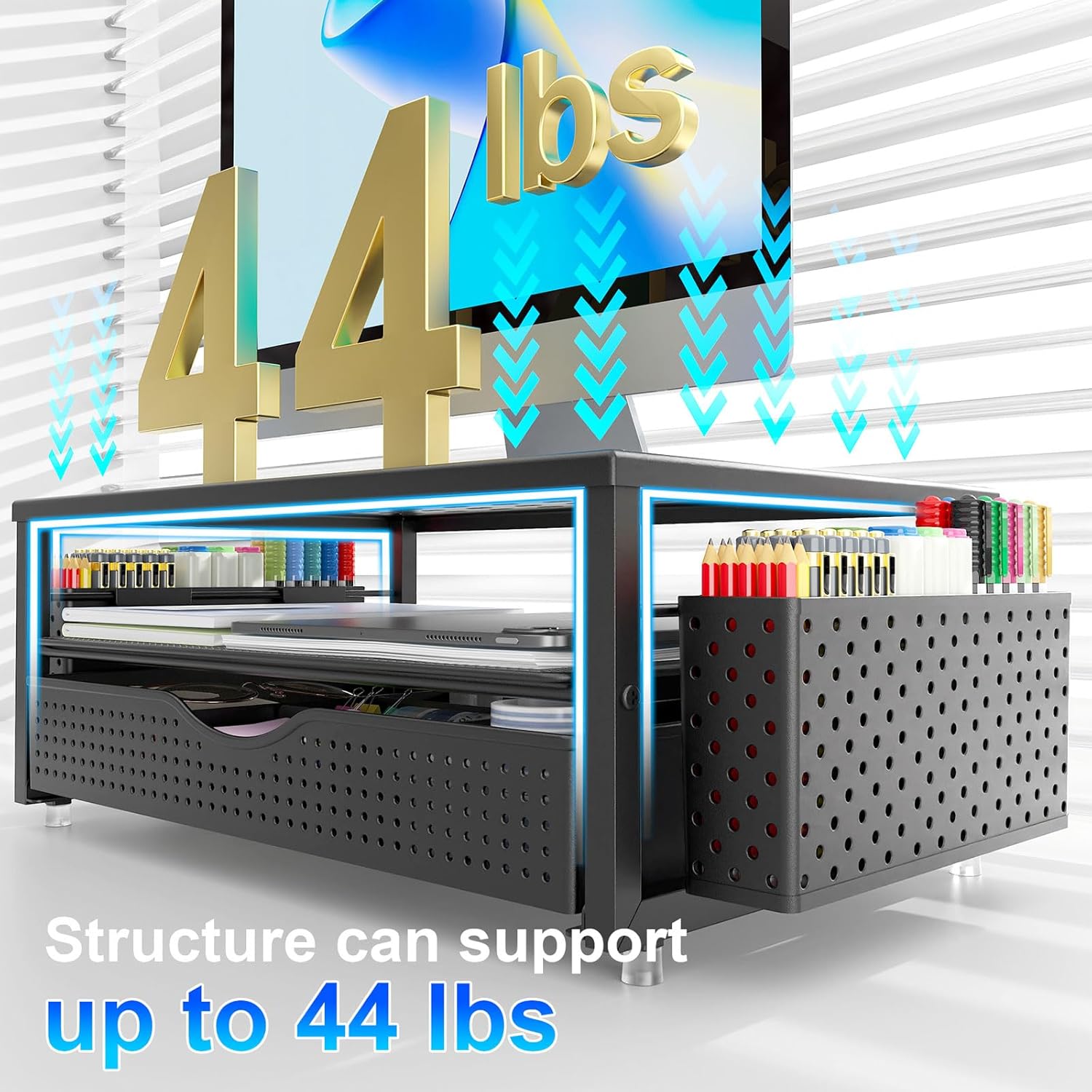 - 【Improved Work Efficiency】: The monitor riser comes with a sliding drawer and two pen holders. It accommodates various office desk items, saving space. It helps you quickly identify the contents of each compartment, doubling your work speed.
