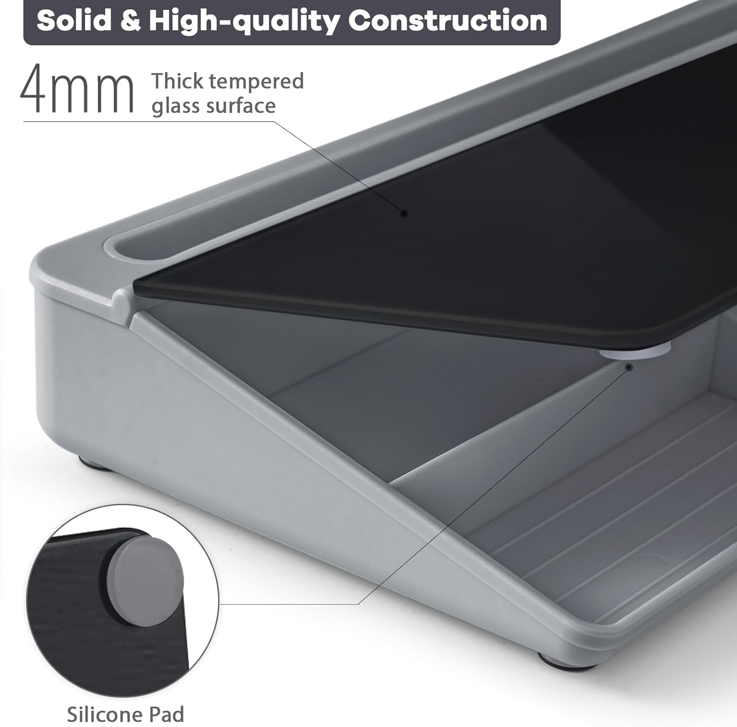 Varhomax Glass Desk Whiteboard with Storage, Desktop Organizer to-do List Memo Notepad Dry Erase White Board for Home Office and School Supplies (Gray&Black)