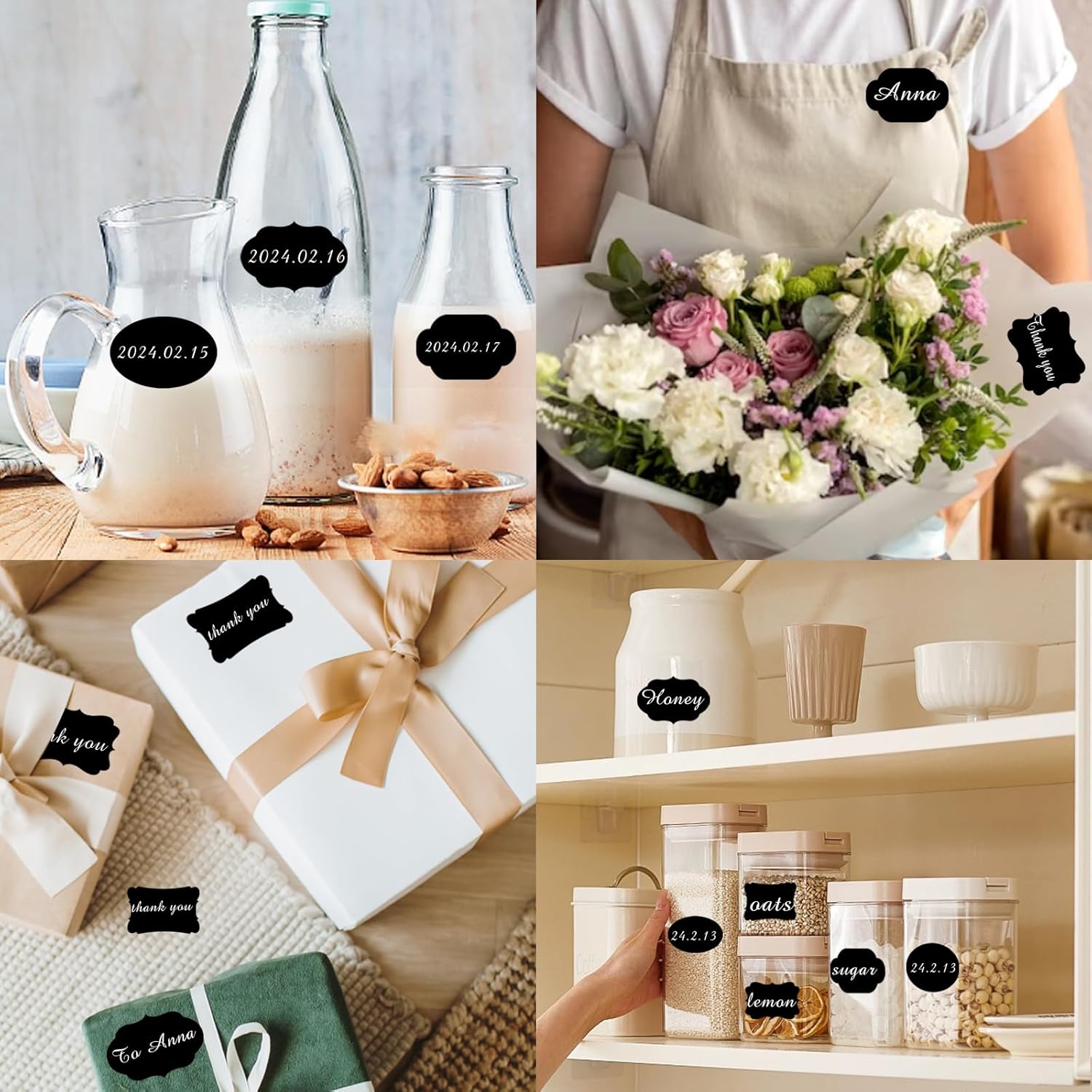 - Blackboard labels: A total of 300 waterproof and reusable blackboard labels, along with two white chalk marker, can be easily written and quickly dried. You can use it to hold bottles, parties, craft rooms, weddings, shops, and home kitchens.