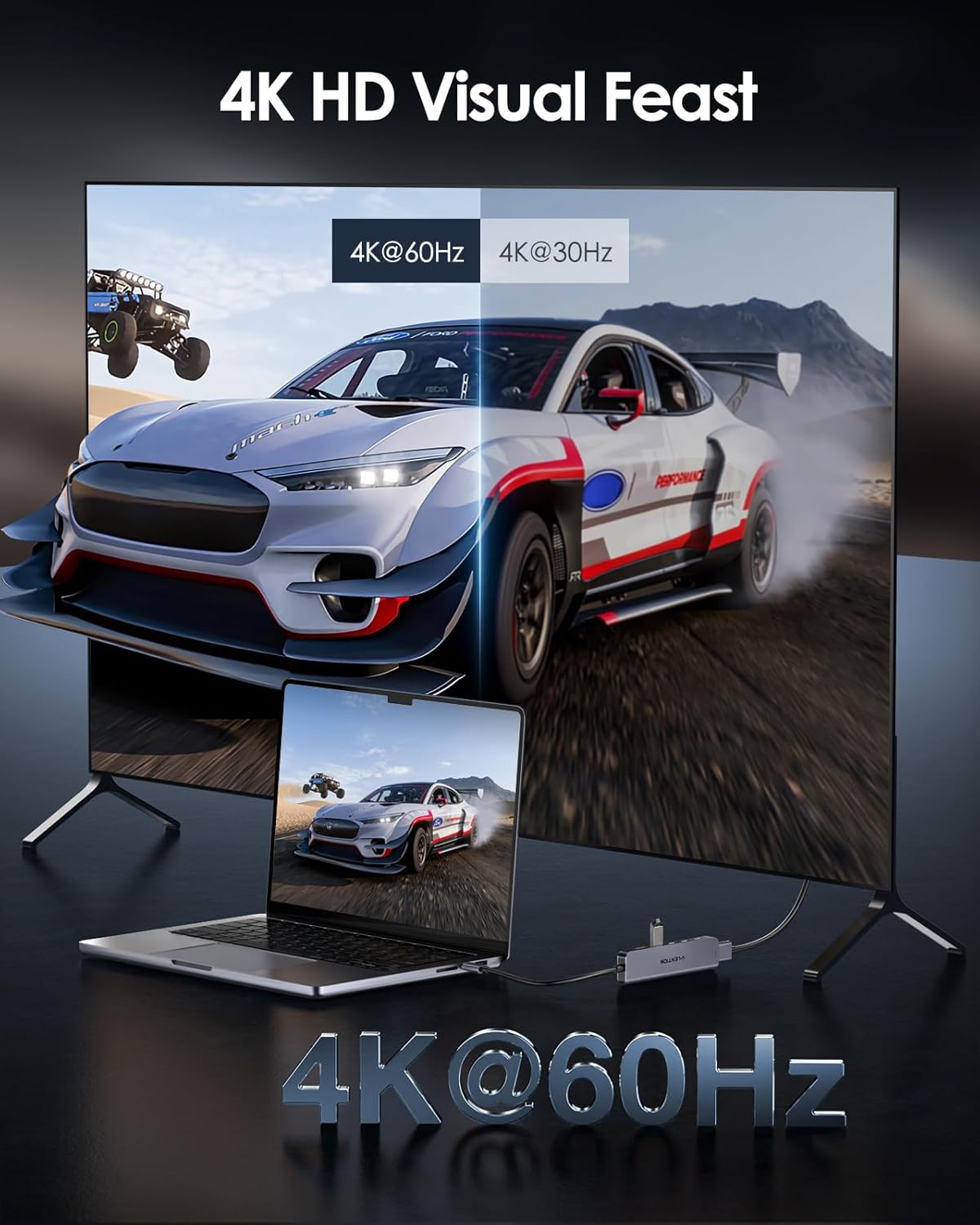 - 4K@60Hz Display - Mirror or extend your screen with USB C to HDMI at resolutions up to 4K@60Hz adapter to HDTV, monitor, or projector. You could enjoy movies with your family on a bigger screen, or making a presentation in a meeting.
