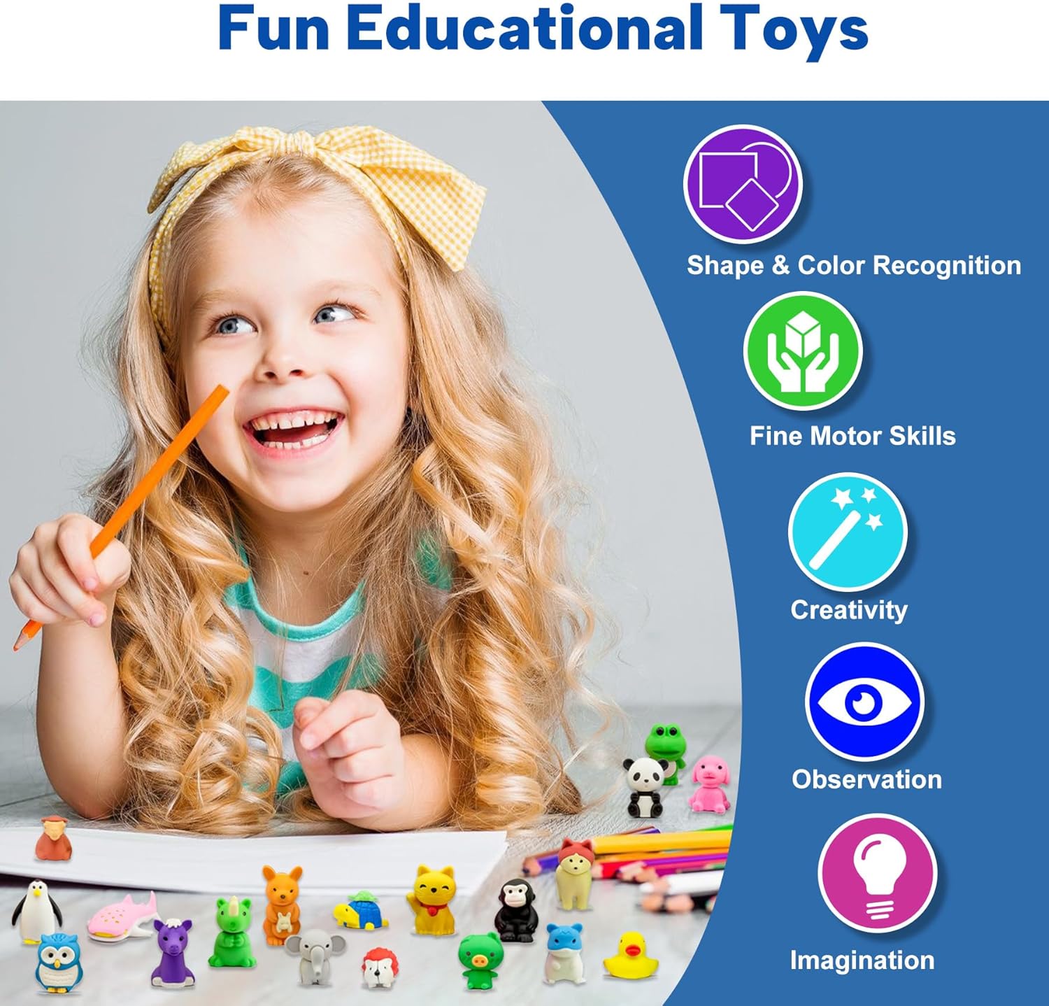 - Kids Educational Toys - The mini erasers for kids can be entertaining as well as educational. These pencil erasers can be taken apart and reassembled, just like puzzles. Animal erasers can help to develop children's cognition of shapes, hand-eye coordination, and creativity