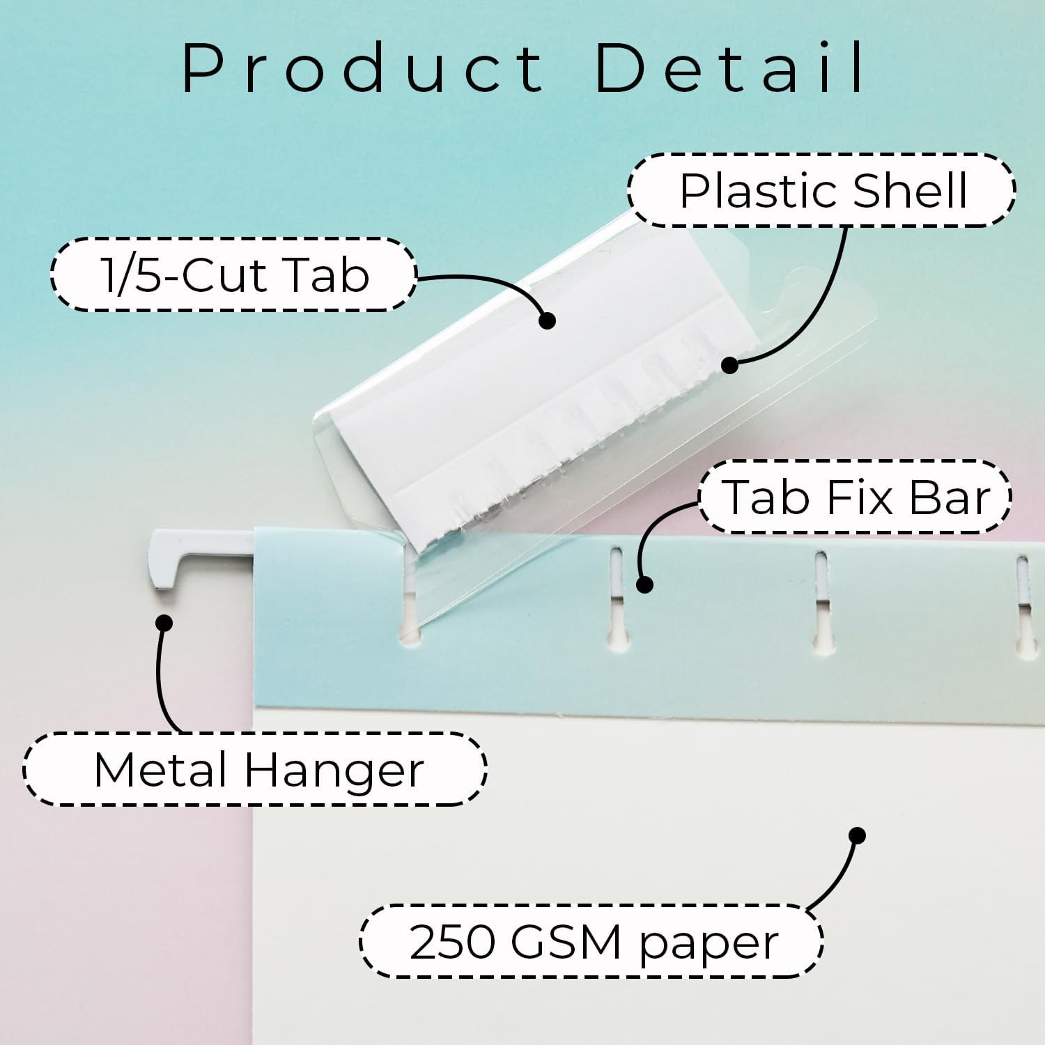 - Sorted Tabs - Each hanging folder features a 1/5-cut custom tab for hassle-free organizing and access to documents. Our pretty hanging folder can store bulky files, medical charts, or product manuals and keep files separate