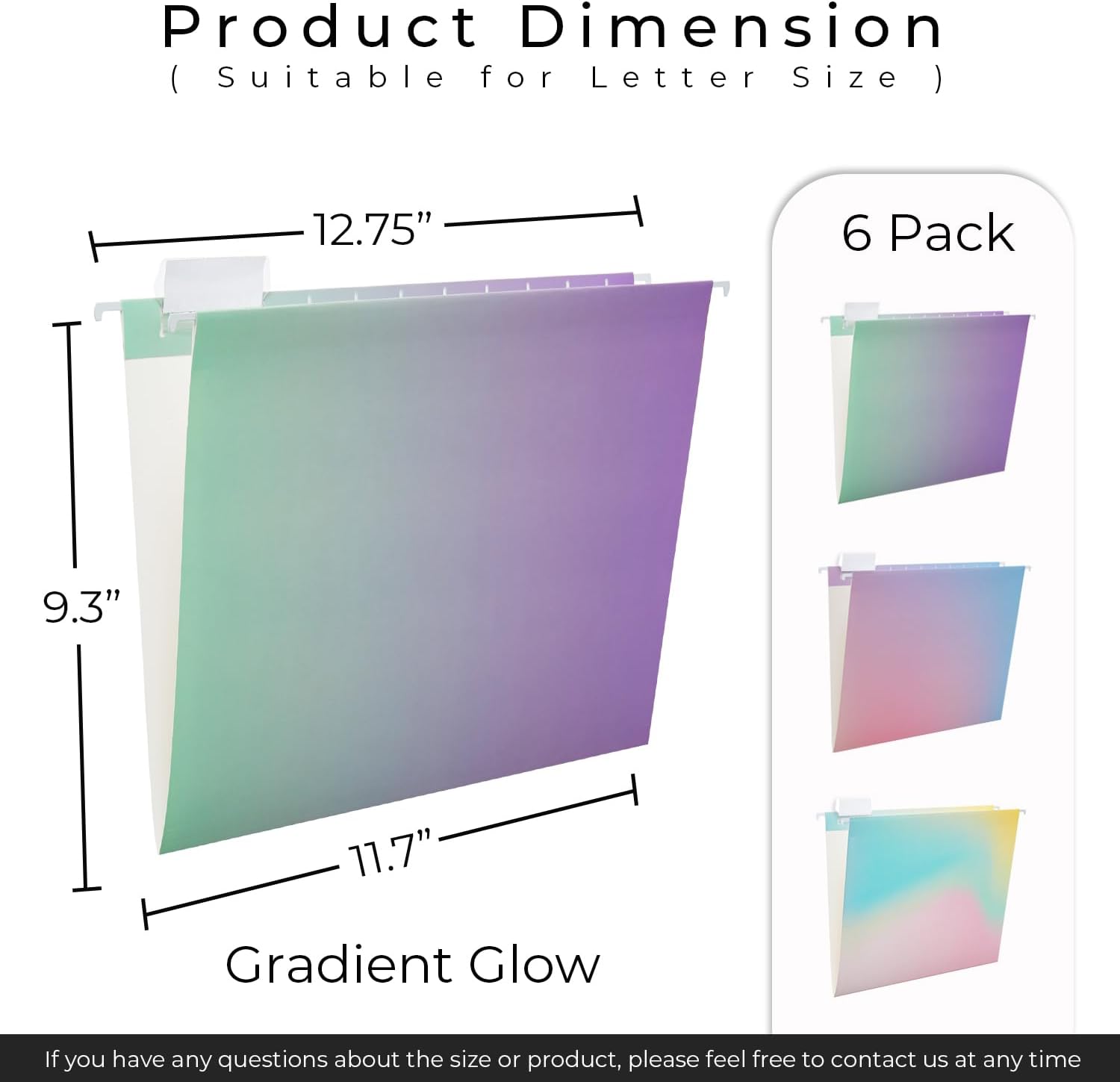 Y YOMA 6 Pack Decorative Hanging File Folders Letter Size Cute Hanging Folder Pretty File Folder Organizer for Filing Cabinet Office Home with 1/5-Cut Adjustable Tabs, Gradient Glow