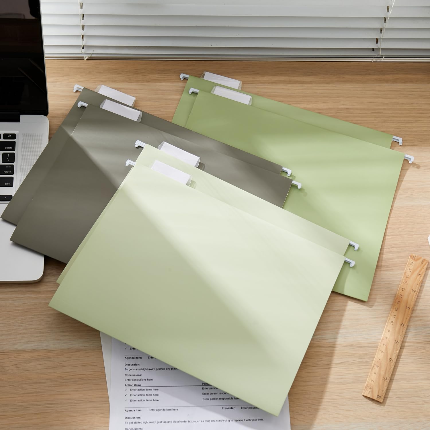 Y YOMA 6 Pack Gradient Hanging File Folders Letter Size Decorative Hanging Folder Pretty File Folder Organizer for Filing Cabinet Office Home with 1/5-Cut Adjustable Tabs, Leaf Green