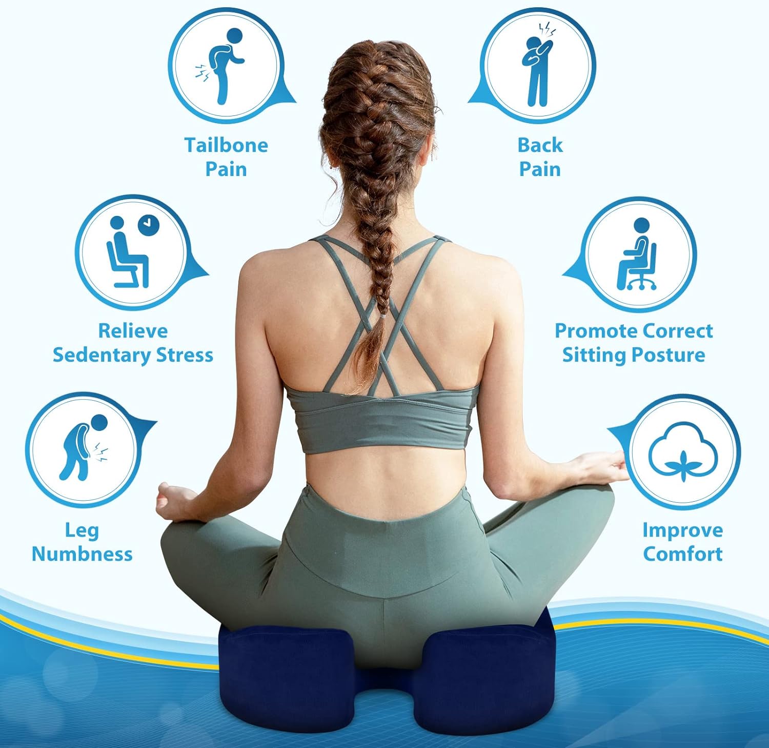 BlissTrends Seat Cushion,5.2in Thick Memory Foam Cushions for Office Chair, Car Seat, Airplane, Relieving Pressure Tailbone Sciatica Back Pain for Long Sitting Office Workers, Car Drivers Blue