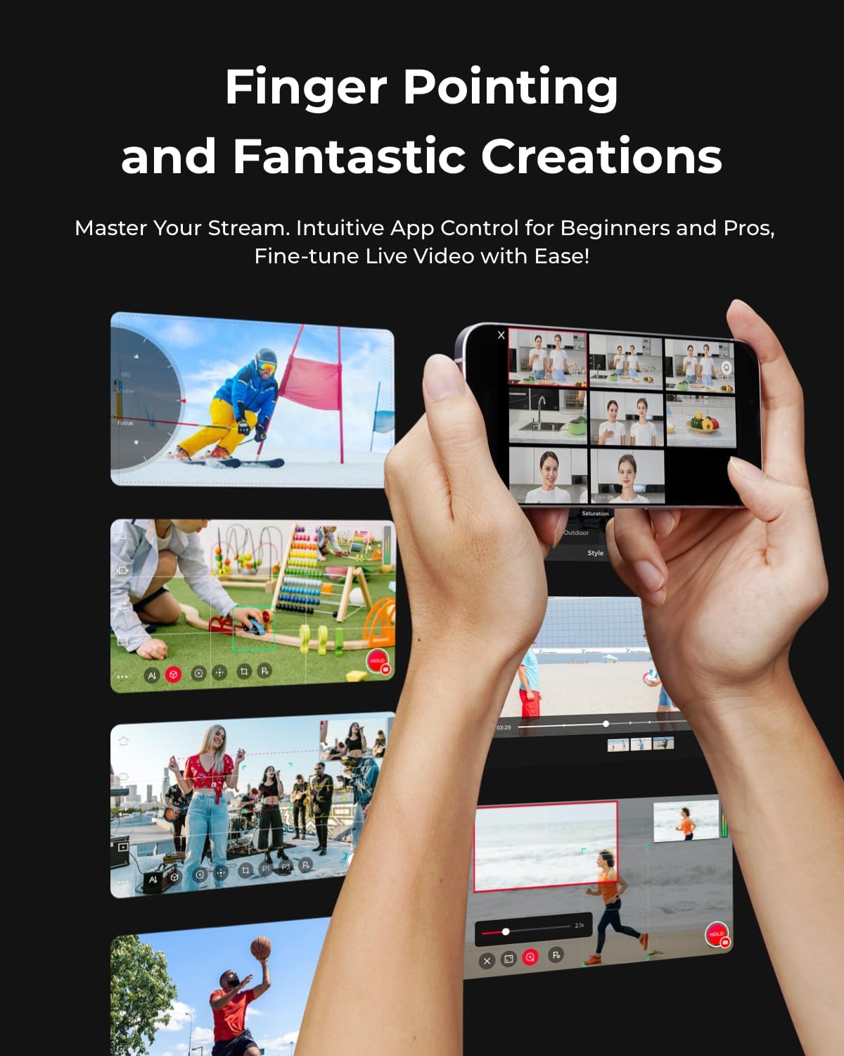 - 【Multi-Control Options】You have the freedom to choose the most convenient and suitable method to operate the Tail Air camera for streaming. Whether it's through gestures, a remote control, PC & mobile software, or even a stream desk, you can effortlessly control your content creator essentials in the way that works best for you. 🚩Note: Turn on UVC mode in the PC software to turn it into a plug-and-play webcam 4K.