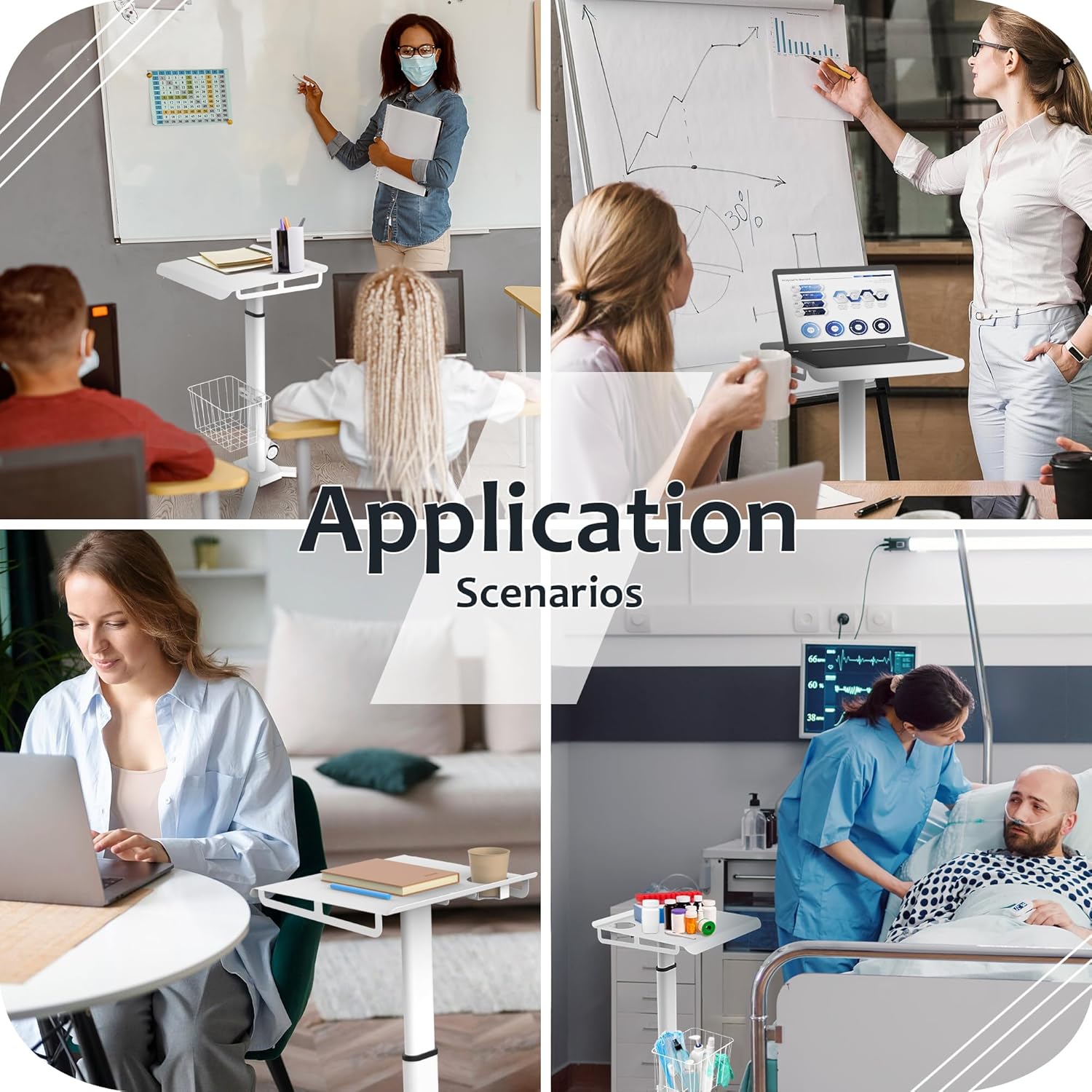 Adjustable Height Portable Laptop Desk with Wheels,White Computer Cart on Wheels,Standing Mobile Desk Workstation, Utility Medical Cart