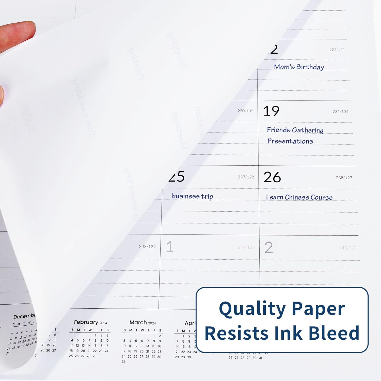 - No Bleeding: The writing paper with 2.25"x1.75" daily blocks is compatible with most pens, like fountain pens, ballpoint, pencils, and highlighters