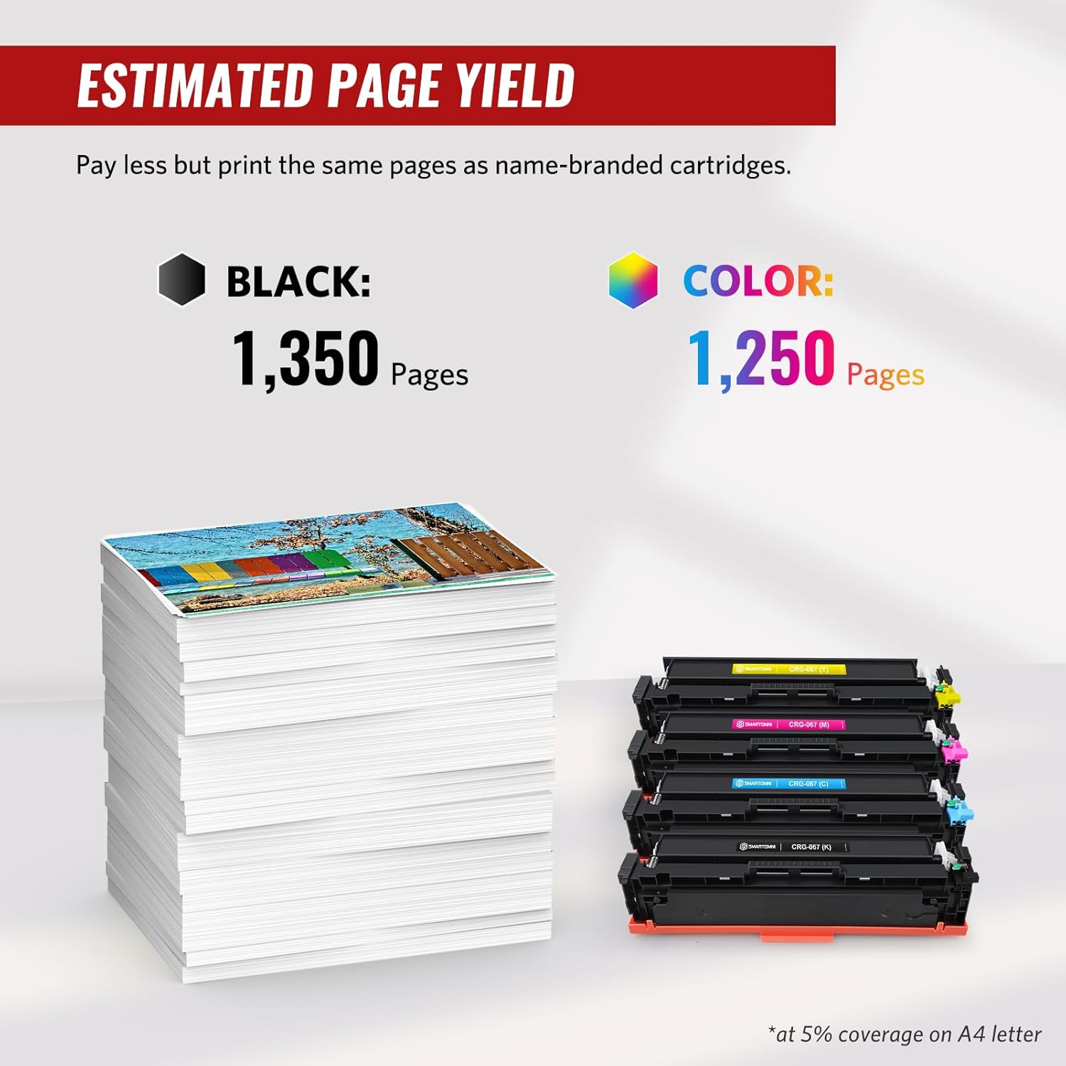 - [PACKAGE CONTENTS] 4 Packs S SMARTOMNI compatible 067 CRG067 toner cartridges (4 Packs - 1Black /1Cyan /1Magenta /1Yellow).