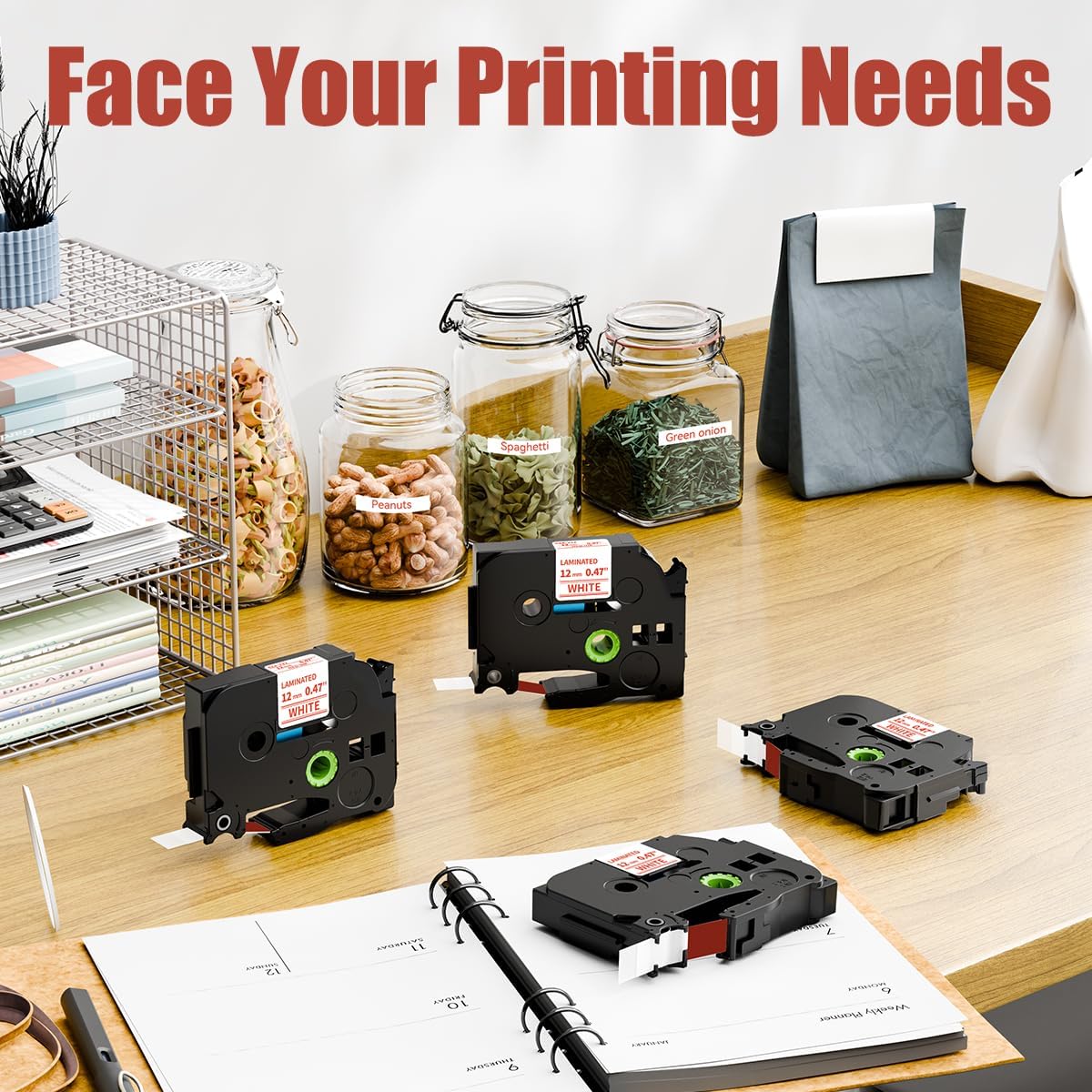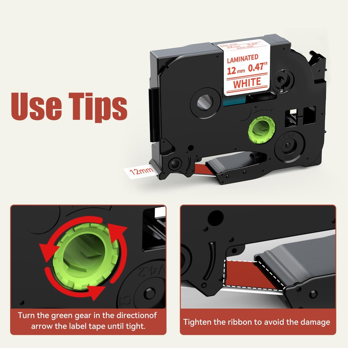 - Compatibility: Label tape 12mm 0.47'' red on white compatible with Brother P Touch label makers PT-D210, PT-D220, PT-D200, PT-H110, PT-D410, PT-D610BT, PT-D400, PT-D600, PT-P710BT, PT-310BT, PT-D460BT, PT-D400AD, PT-D400VP, PT-H111, PT-D450, PT-D600VP, PT-D200G, PT-1090, PT-1190, PT-1230PC, PT-1290, PT-1880C, PT-1880SC, PT-1880W, PT-1890C, PT-1890SC, PT-1890W, PT-1950, PT-2430PC, PT-6100, PT-D800W, PT-H100, PT-E100, PT-H300, PT-H300LI, PT-H500LI, PT-P700, PT-P750W, PT-9600 as well as others