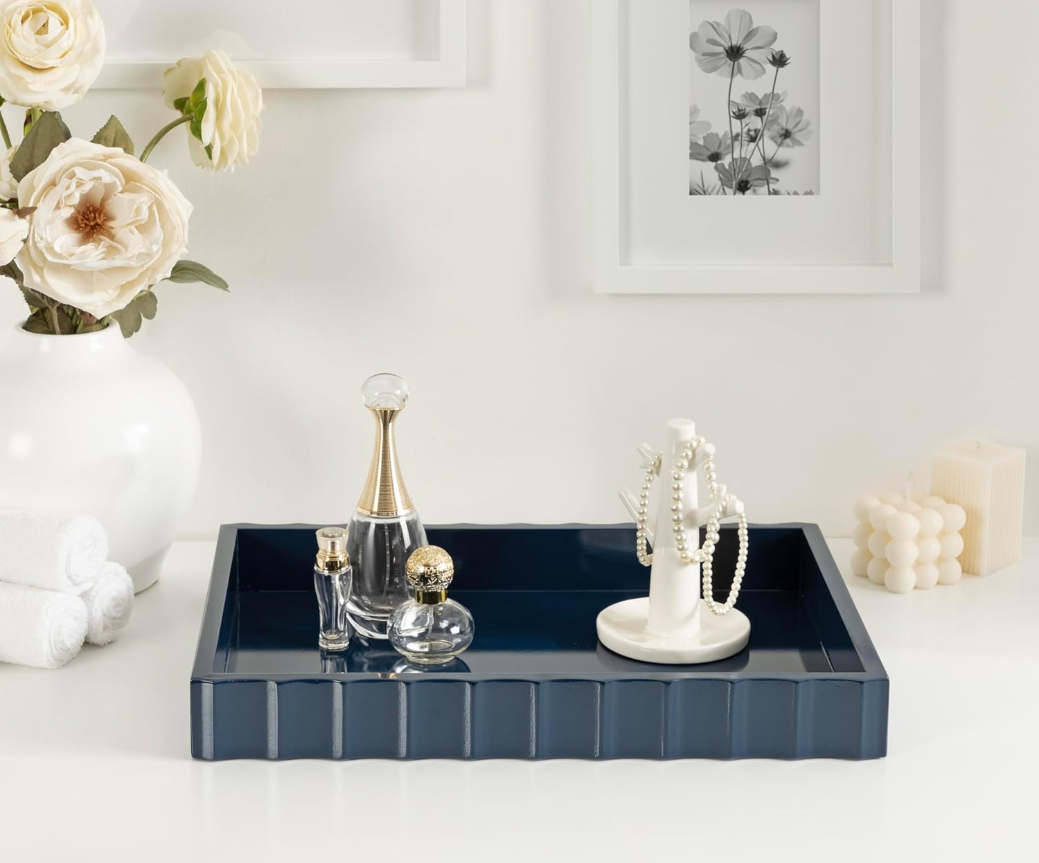 Kate and Laurel Lissi Decorative Rectangle Tray with Wavy Design, 16 x 12, Navy Blue, Modern Scalloped Serving Tray for Coffee Table Ottoman, Dining Table, or Entryway Catch-All Tray